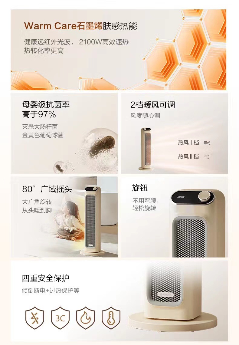에밋 HP21-K36 흑연 공기 히터 가정용 타워 수직 히터 거실 큰 공간 빠른 열전