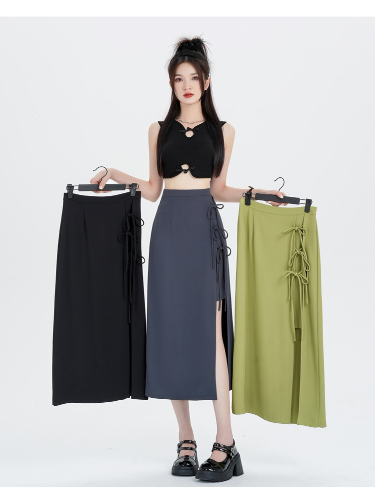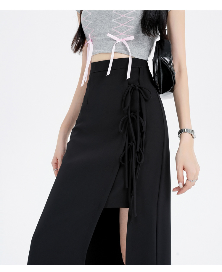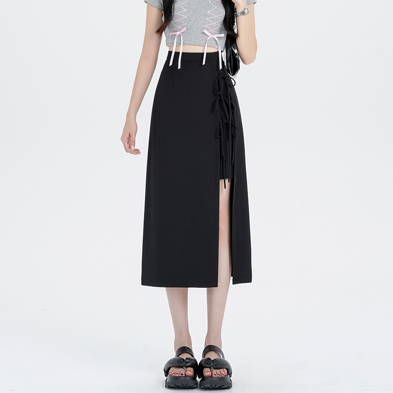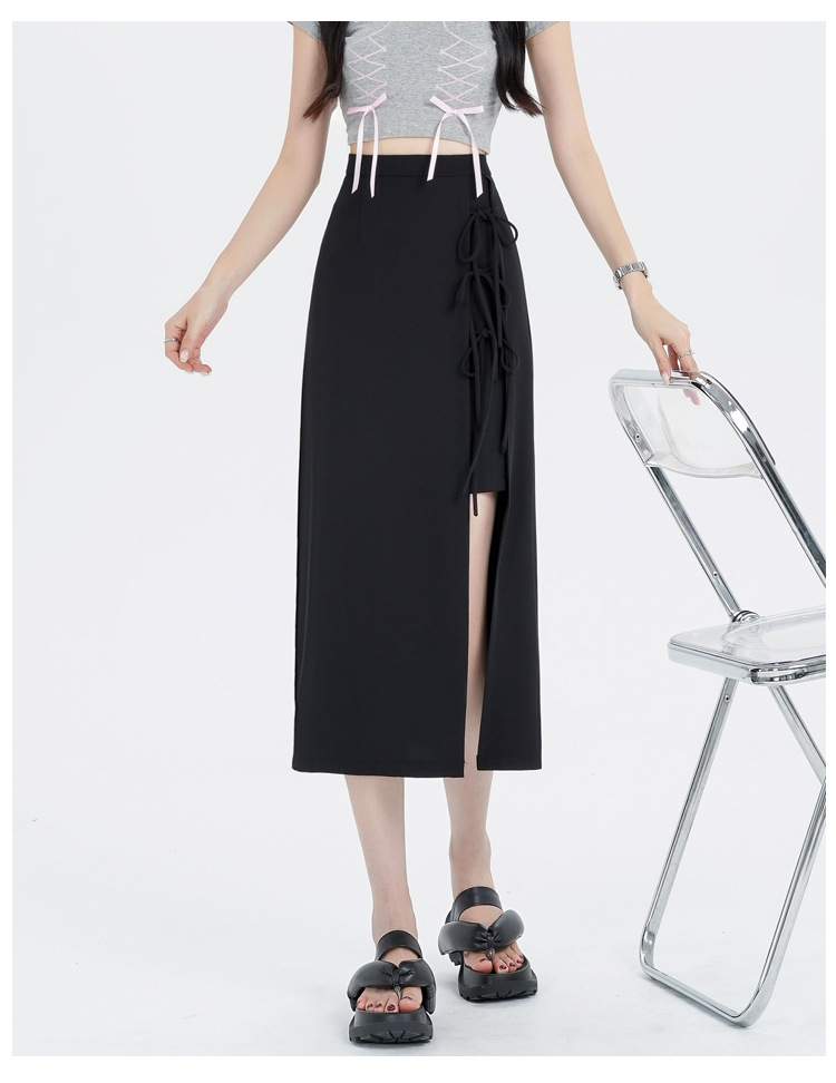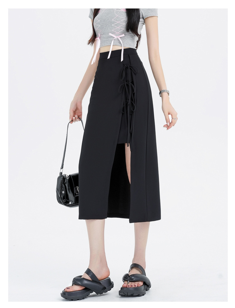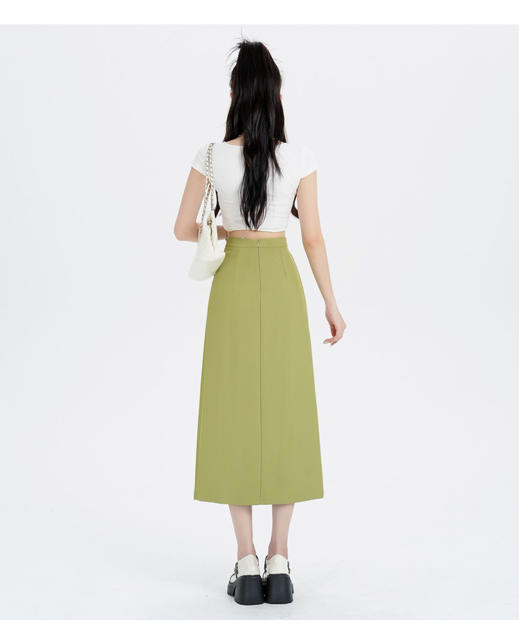 리얼 샷 스커트 여자 여름 2025 새로운 높은 허리 스커트 작은 스트레이트 엉덩이 세트 A-라인 중간 길이 원피스