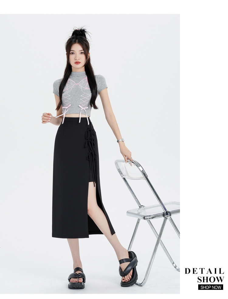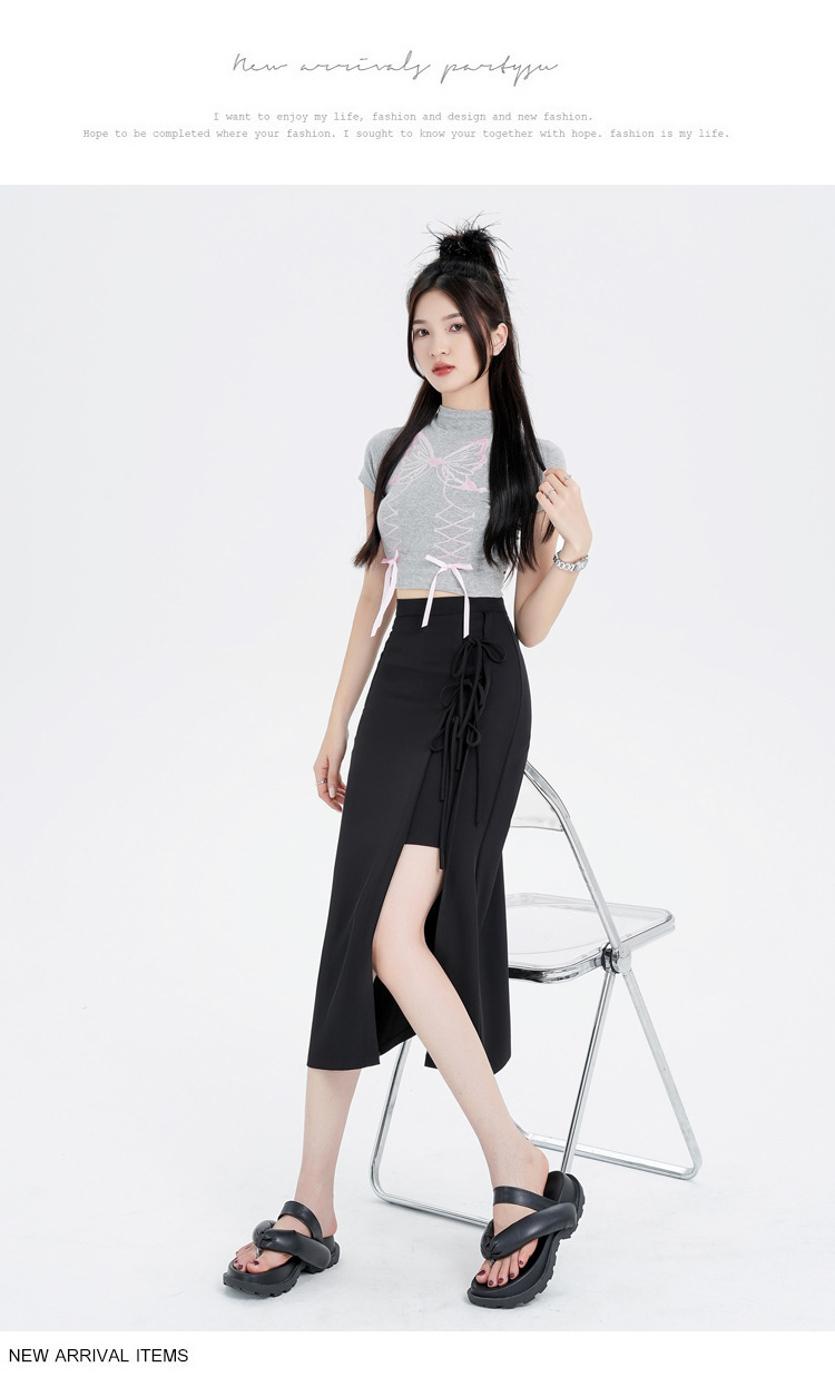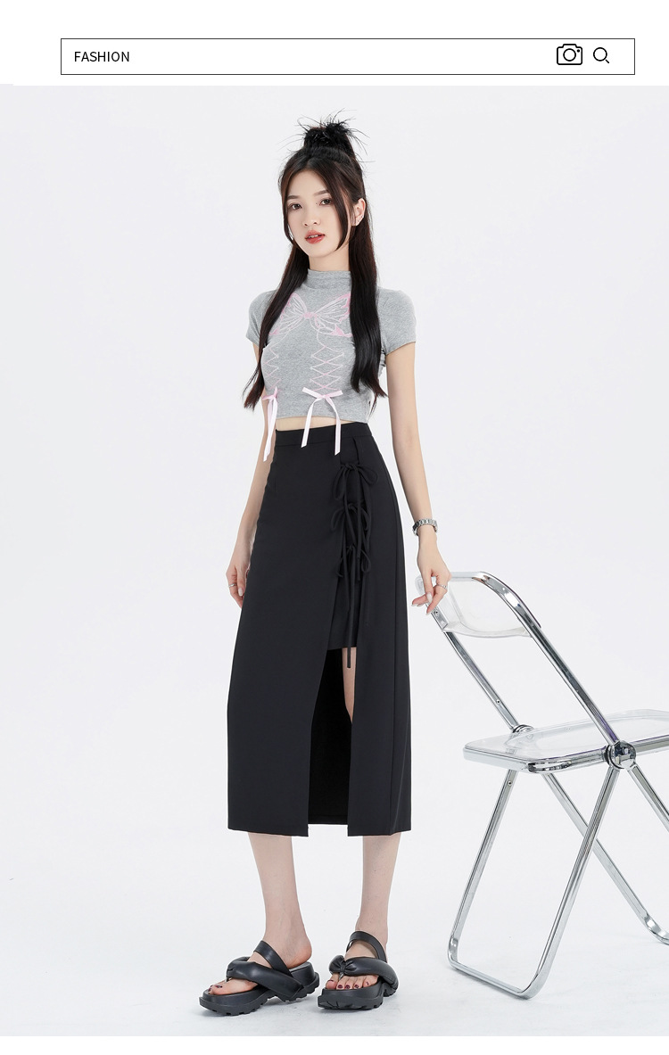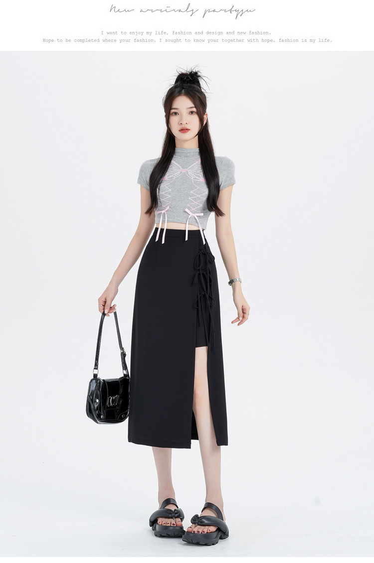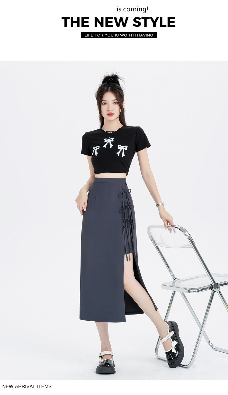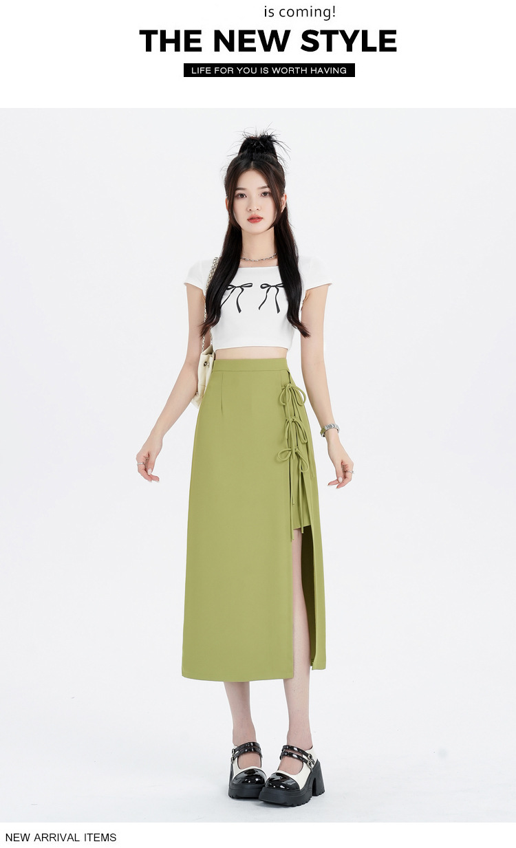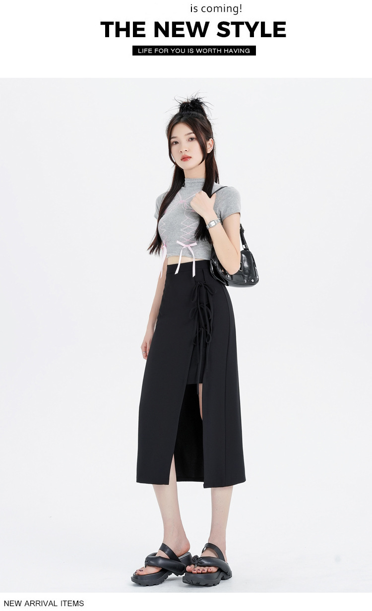 리얼 샷 스커트 여자 여름 2025 새로운 높은 허리 스커트 작은 스트레이트 엉덩이 세트 A-라인 중간 길이 원피스스토어 가기