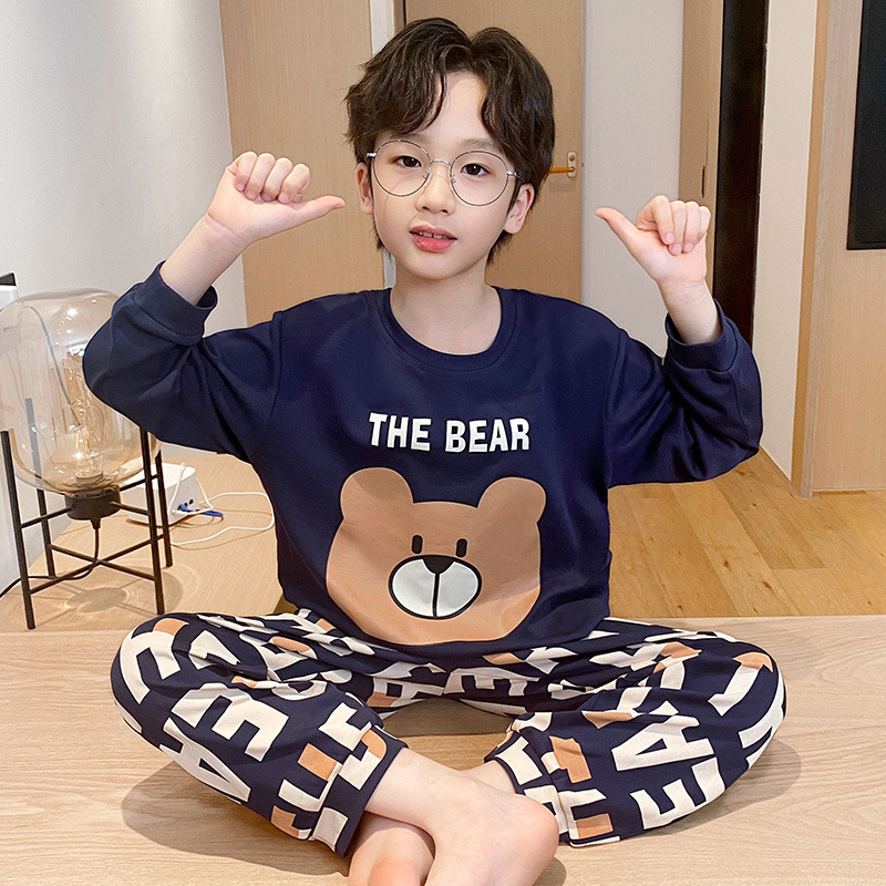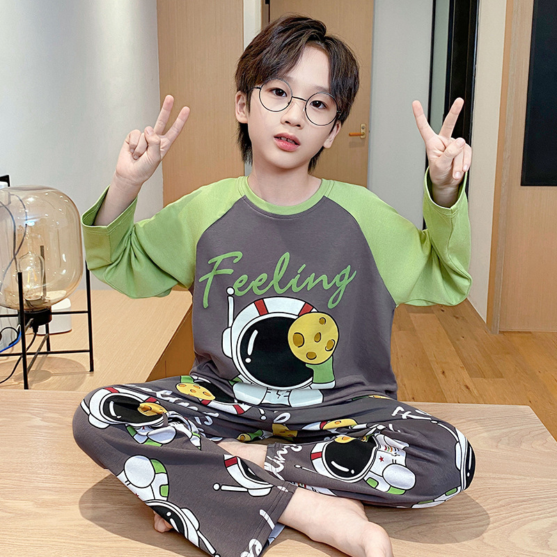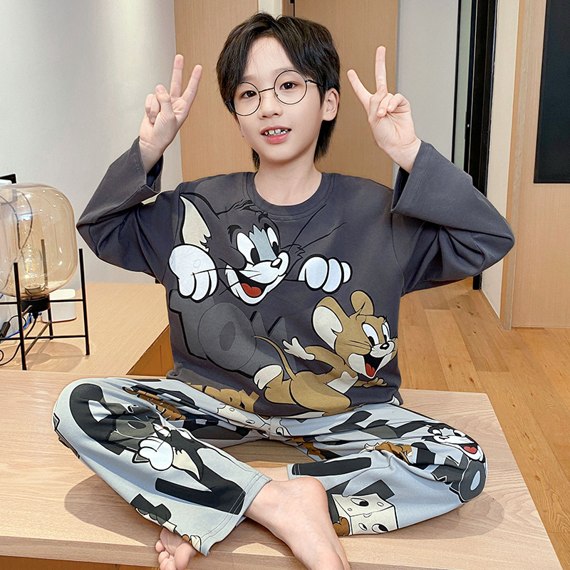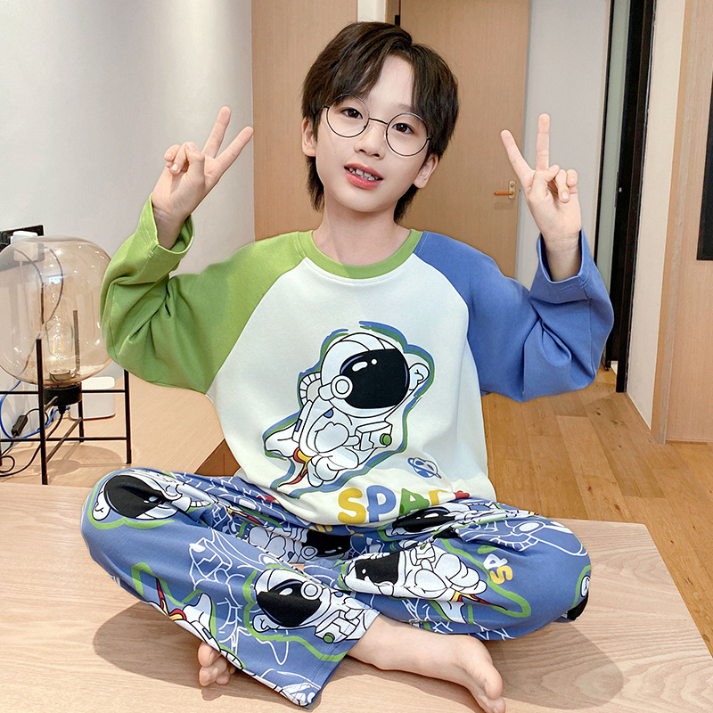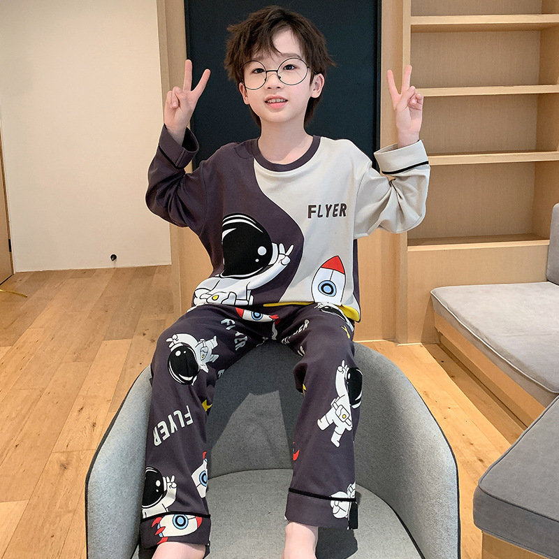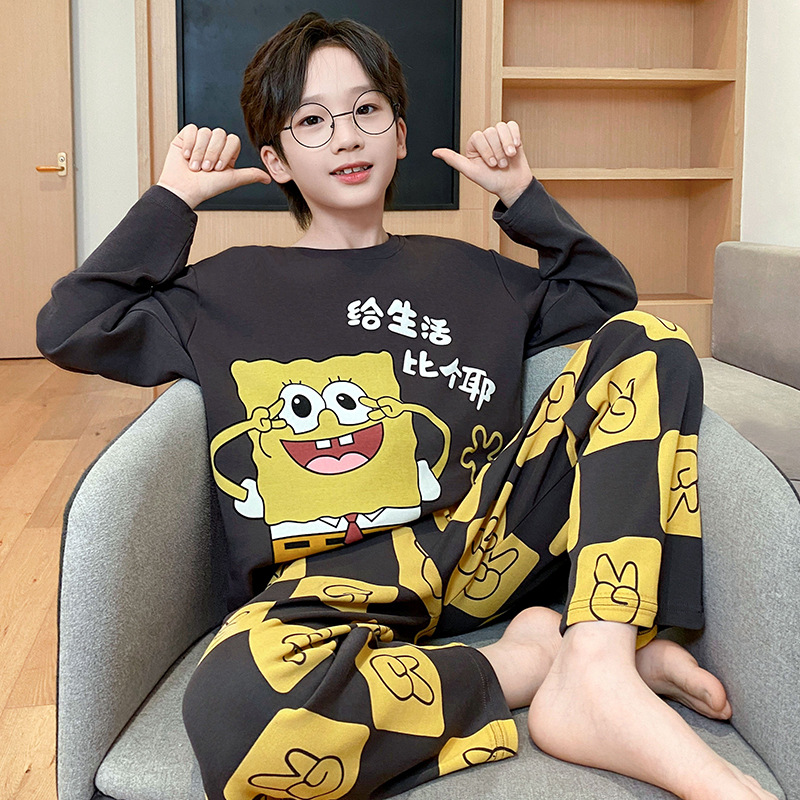 2025 봄 새로운 국경 폭발 어린이 잠옷 소년 만화 긴 소매 바지 세트 어린이 잠옷 카드