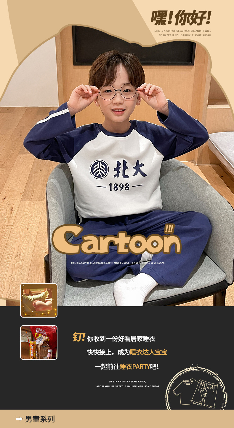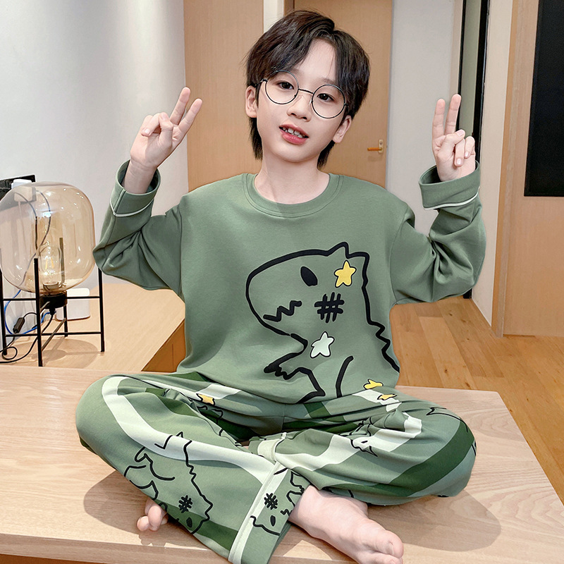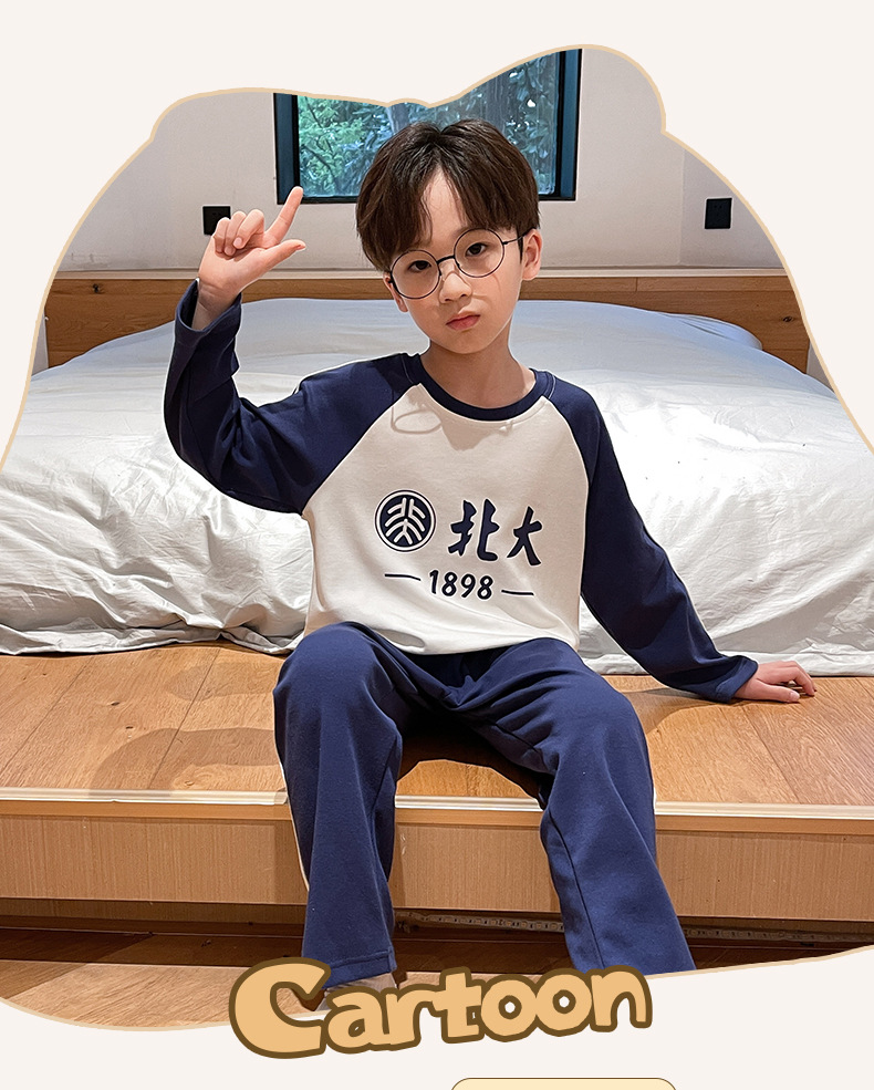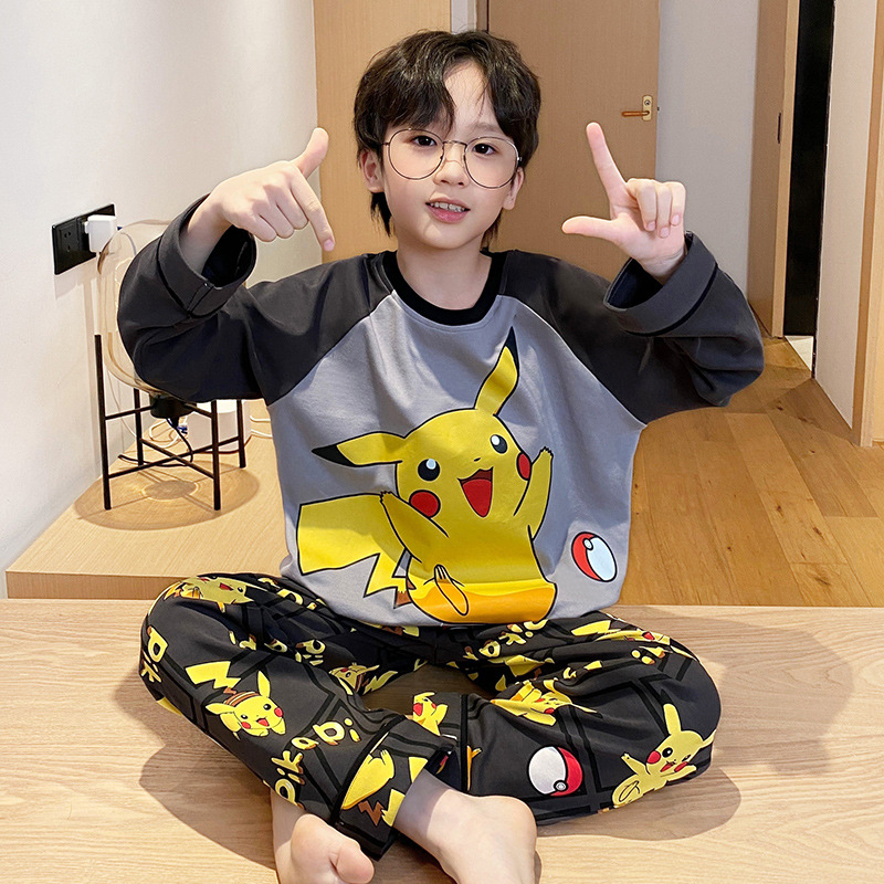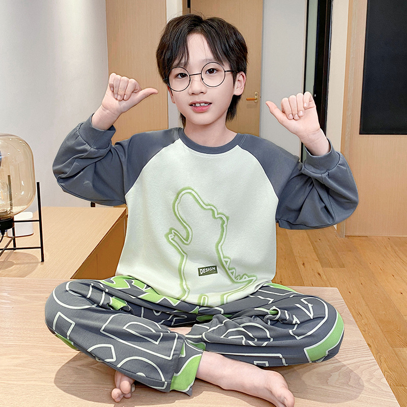 2025 봄 새로운 국경 폭발 어린이 잠옷 소년 만화 긴 소매 바지 세트 어린이 잠옷 카드