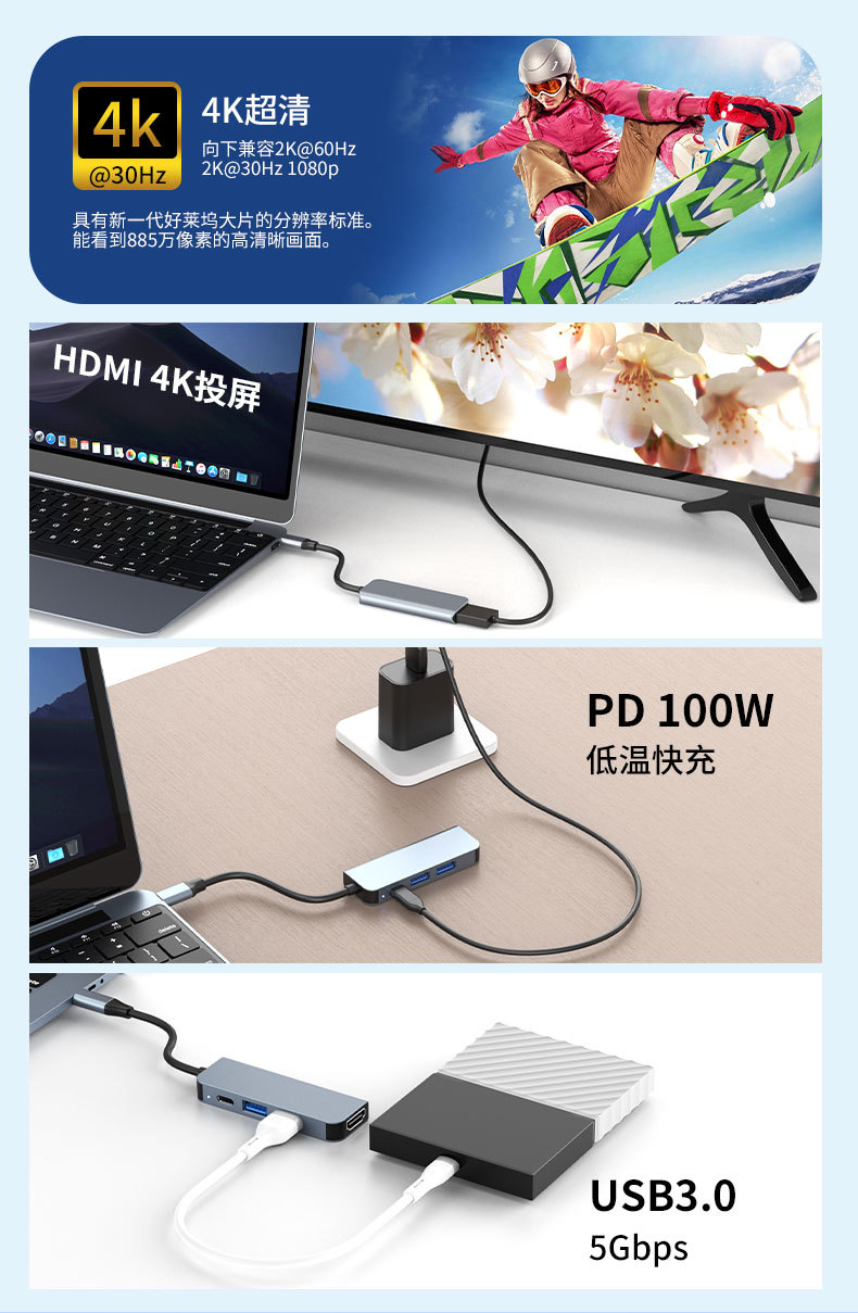 Typec, USB 스플리터 멀티 인터페이스 hdmi 네트워크 케이블 어댑터 컴퓨터 컨버터 5 대 1 도킹 스테이션 확장스토어 가기