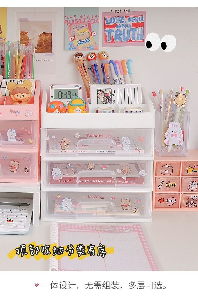 플라스틱 저장 상자 학생 손 계정 Sundry 드레싱 테이블 기숙사 필기 책상 보관 랙 데스크톱 보관 상자스토어 가기