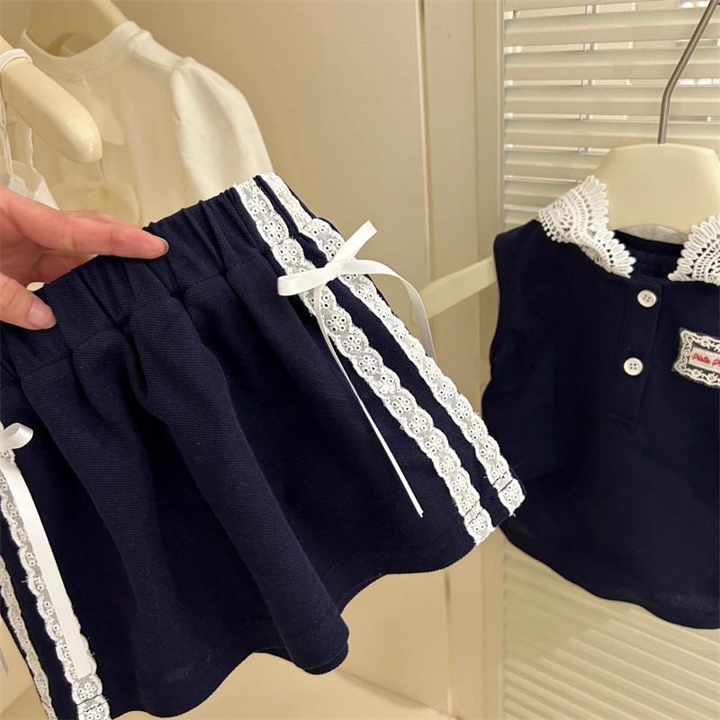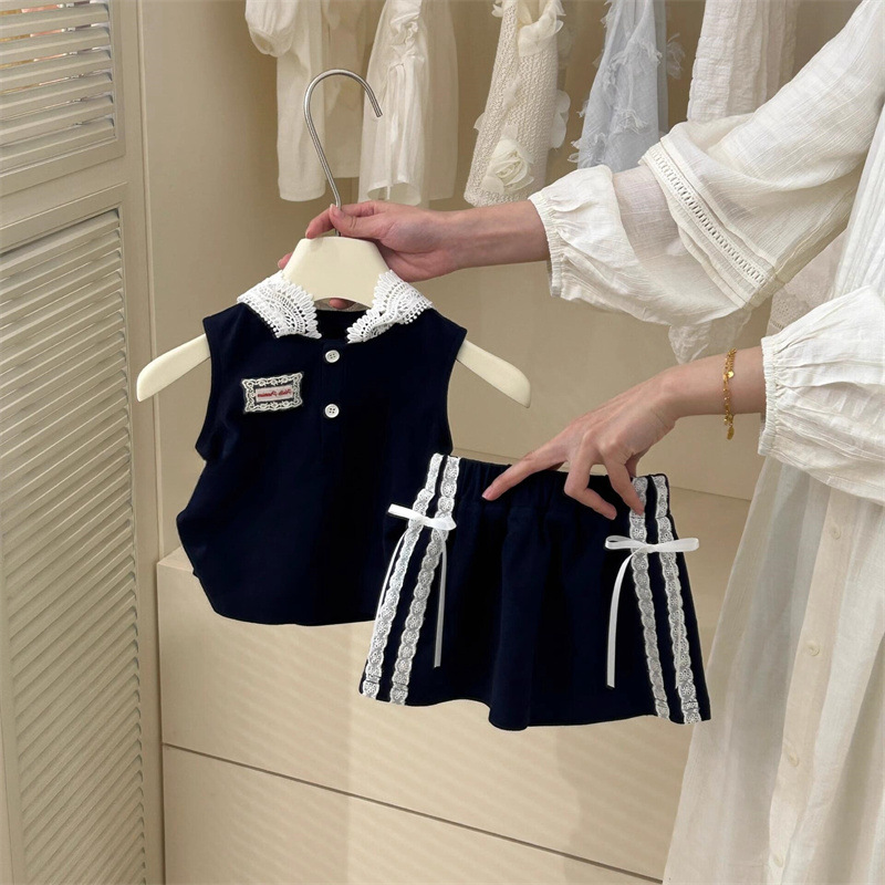 Ningli 소녀 민소매 조끼 세트 봄과 여름 새로운 어린이 후드 탑 오버 스커트 여름 학업 스타일 투피스 세트