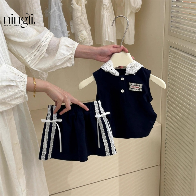Ningli 소녀 민소매 조끼 세트 봄과 여름 새로운 어린이 후드 탑 오버 스커트 여름 학업 스타일 투피스 세트스토어 가기