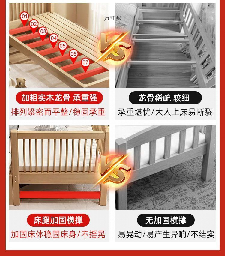 높은 가드 레일 유아용 침대 소년과 소녀 안티 가을 넓은 침대 옆 침실 바느질 침대 도매로 어린이 침대 단단한 나무