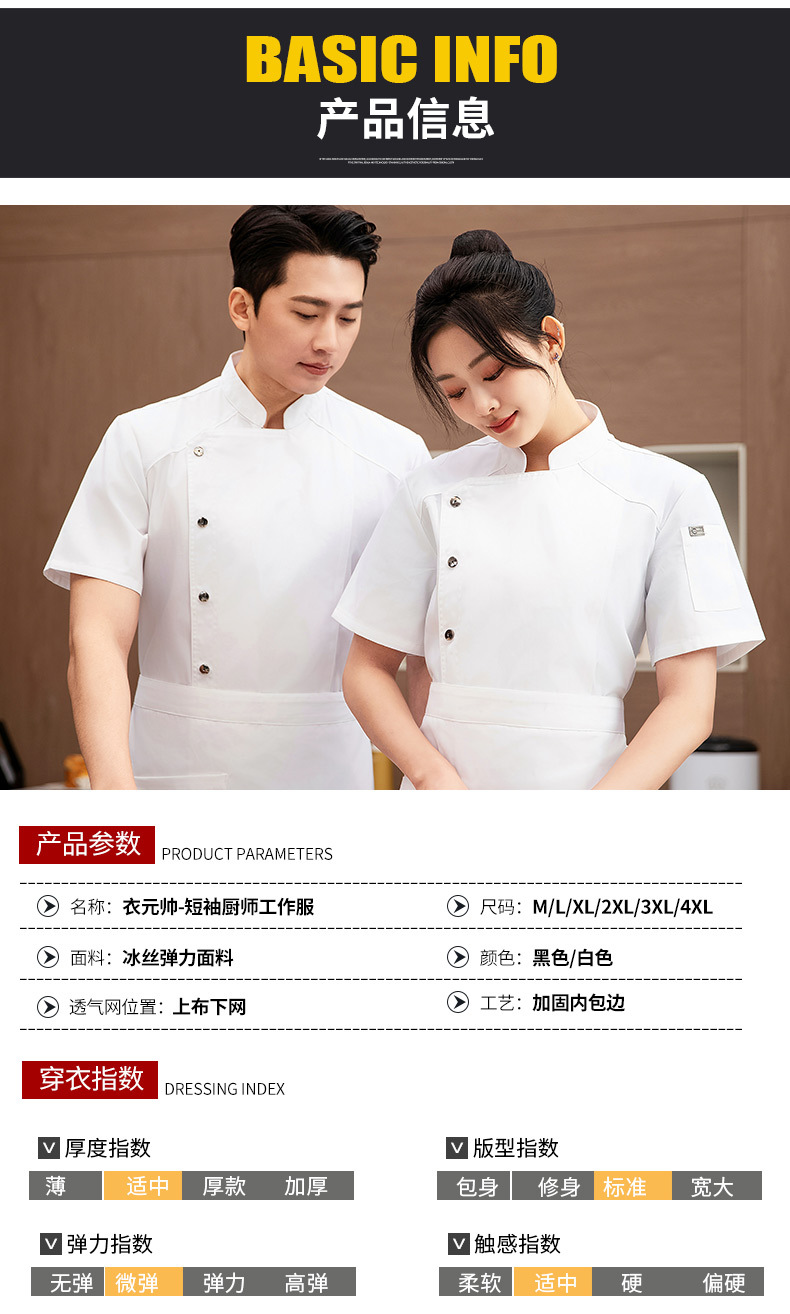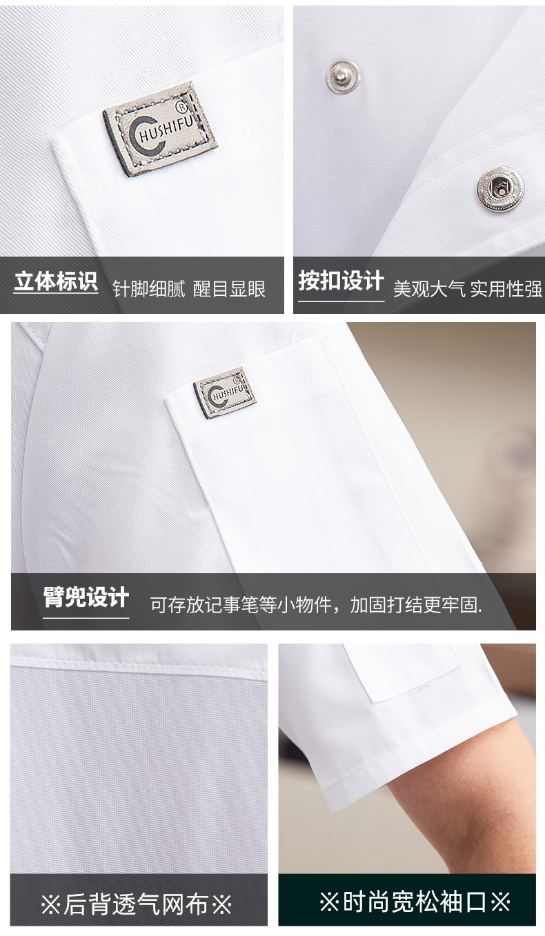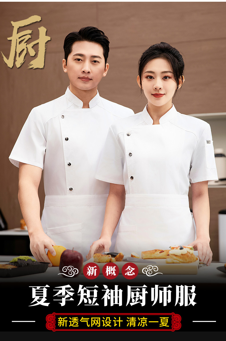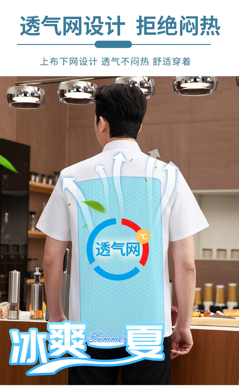 여름 반팔 남성 요리사 작업 옷 남성 매점 레스토랑 호텔 웨스턴 레스토랑 고급 주방 레스토랑 여성의 통기성
