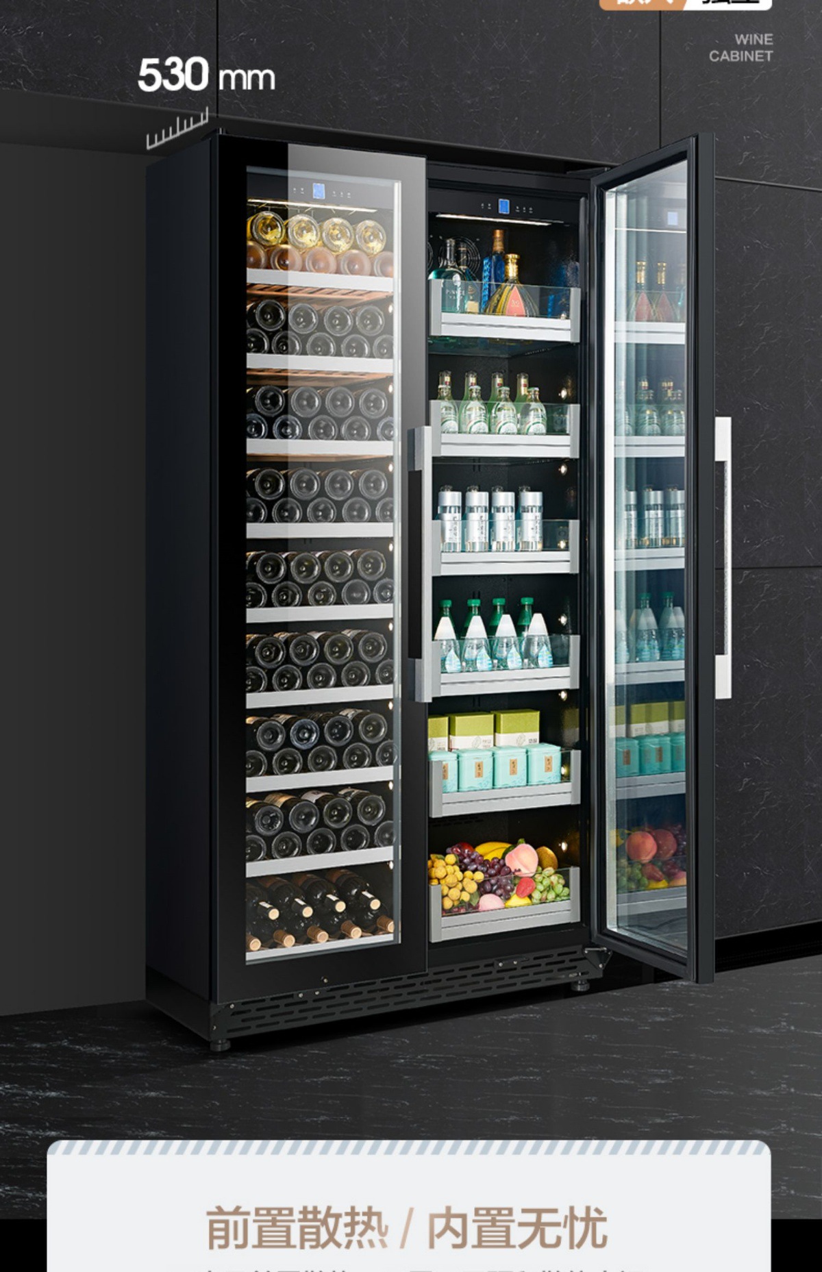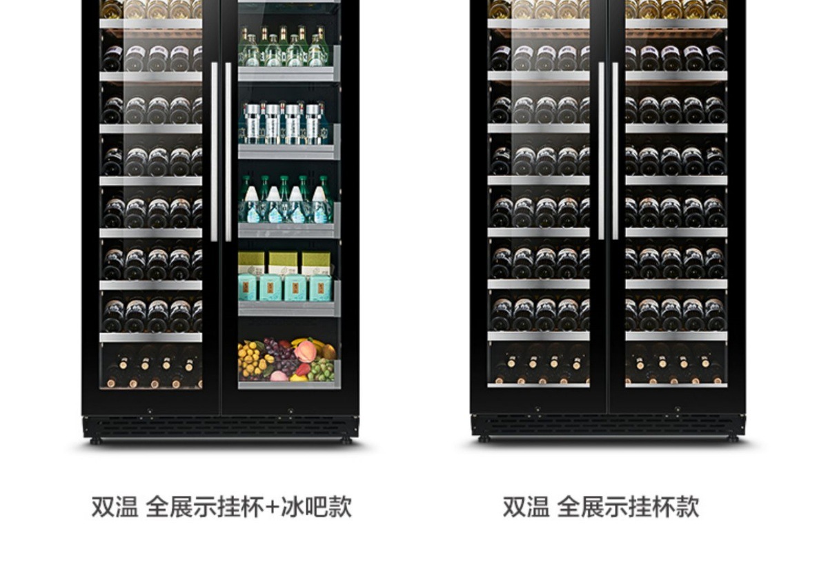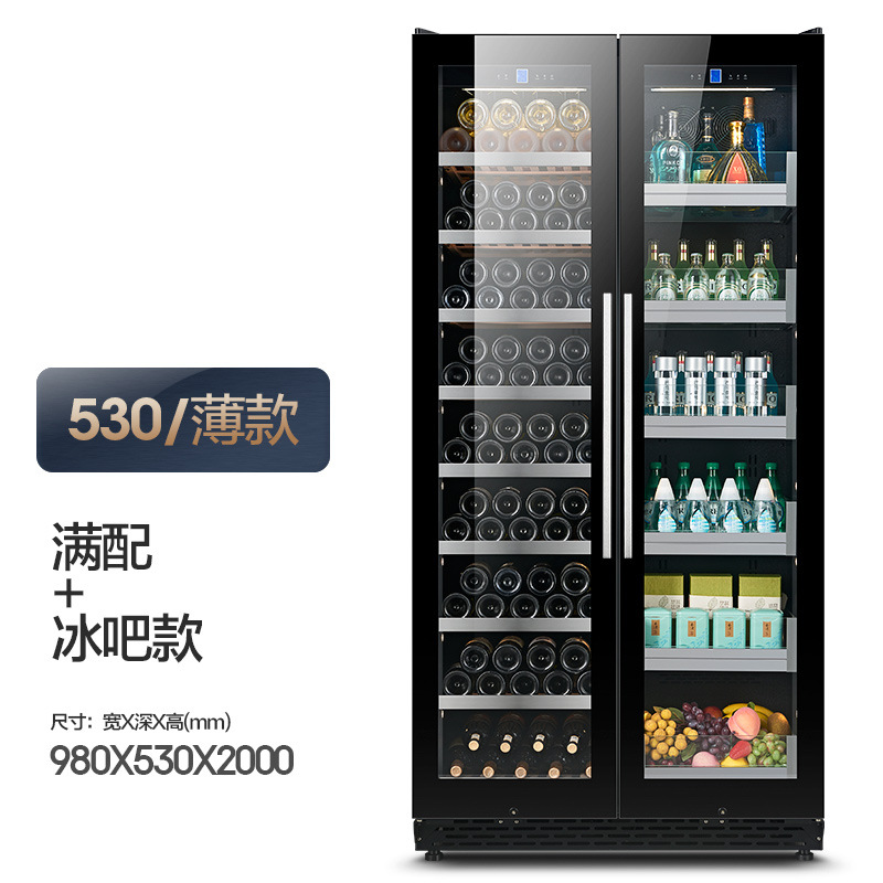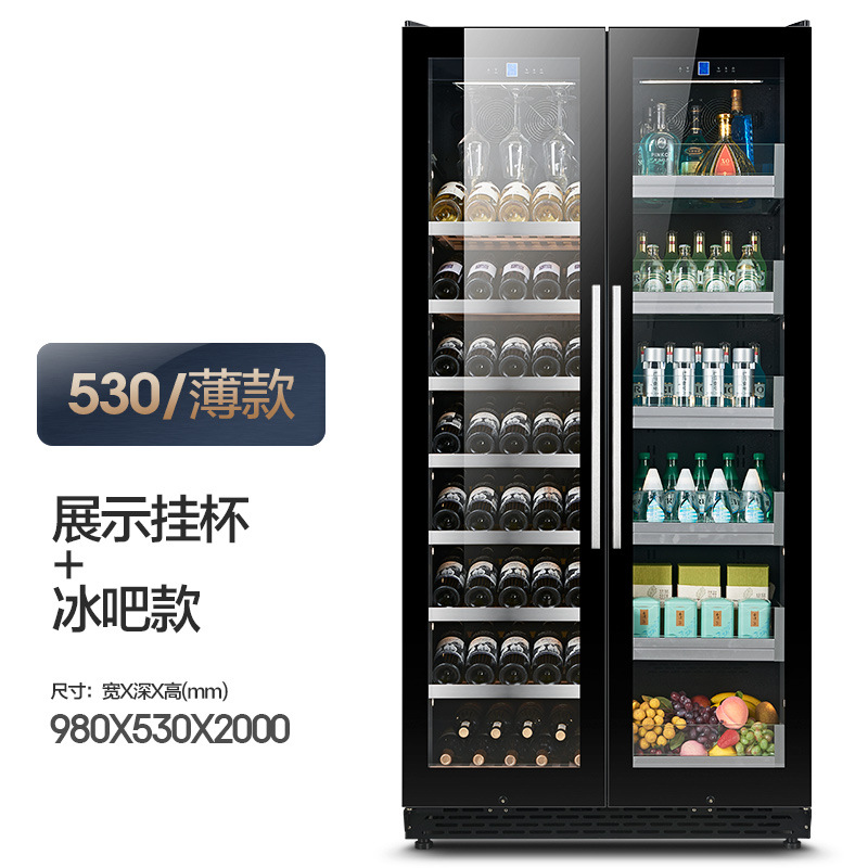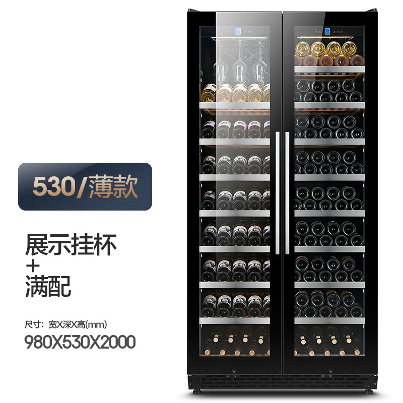 • 이중문/이중온도 [530 얇은 모델] 디스플레이 행잉 컵 + 와인 캐비닛 전체 장착