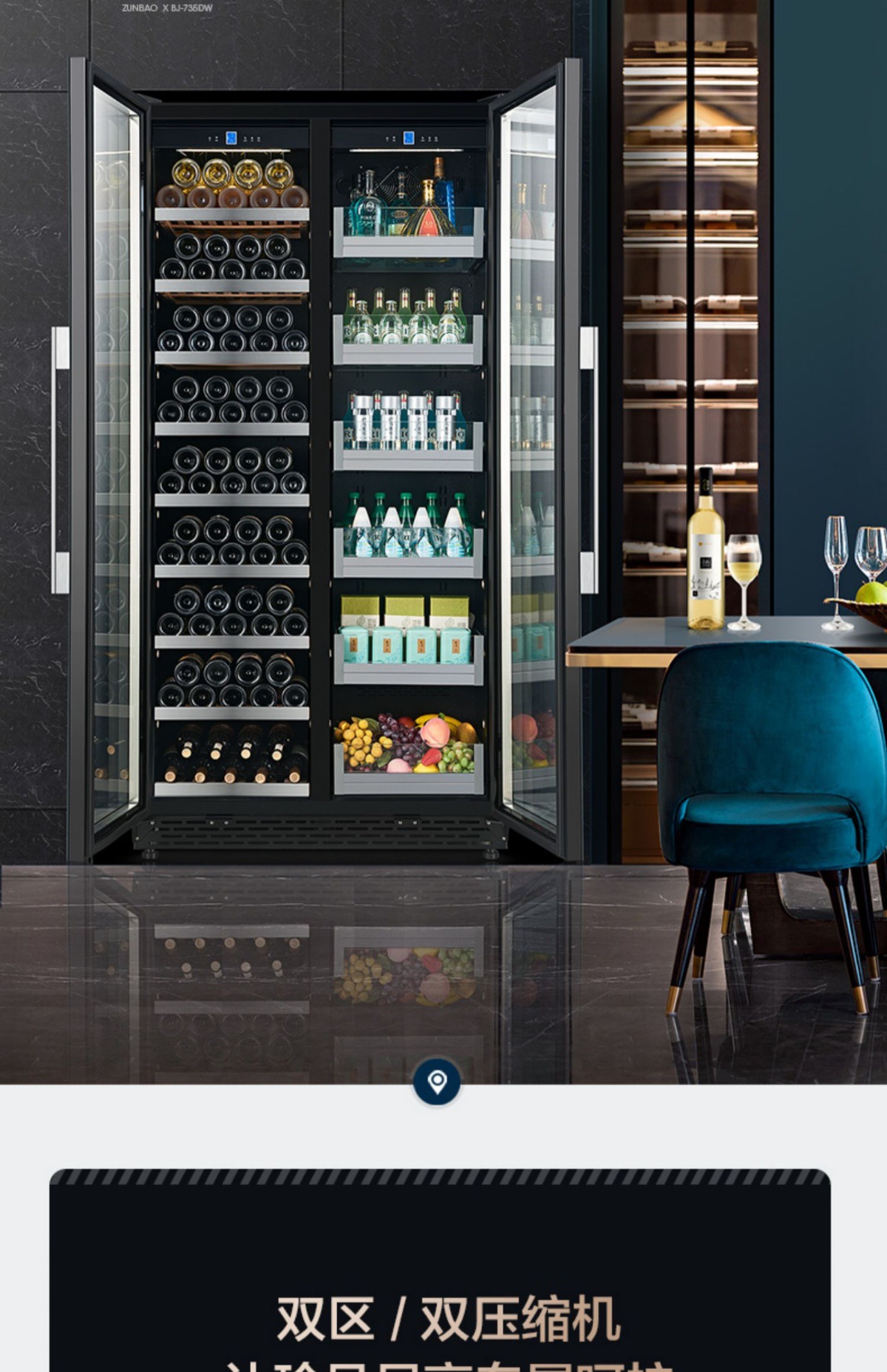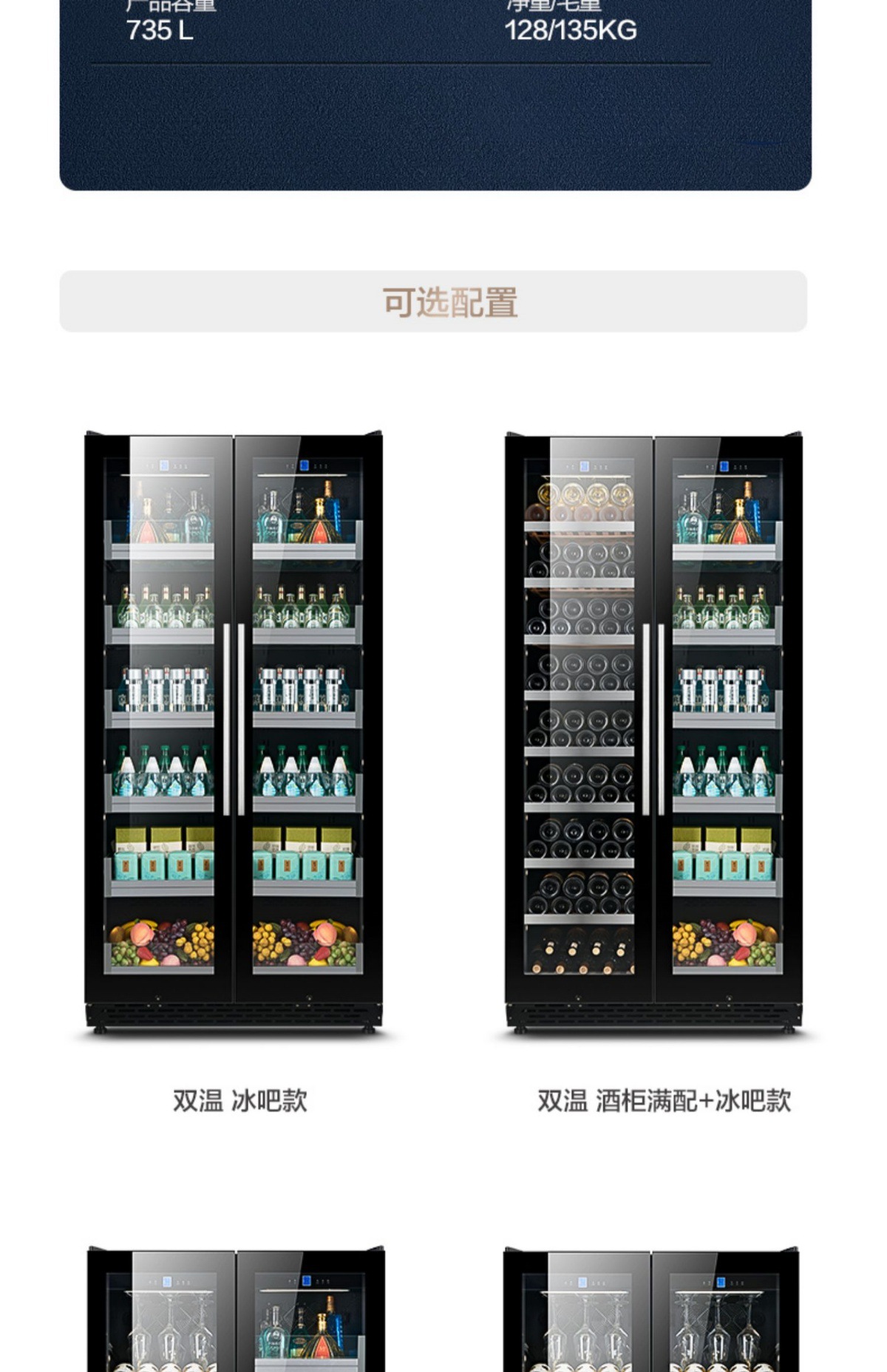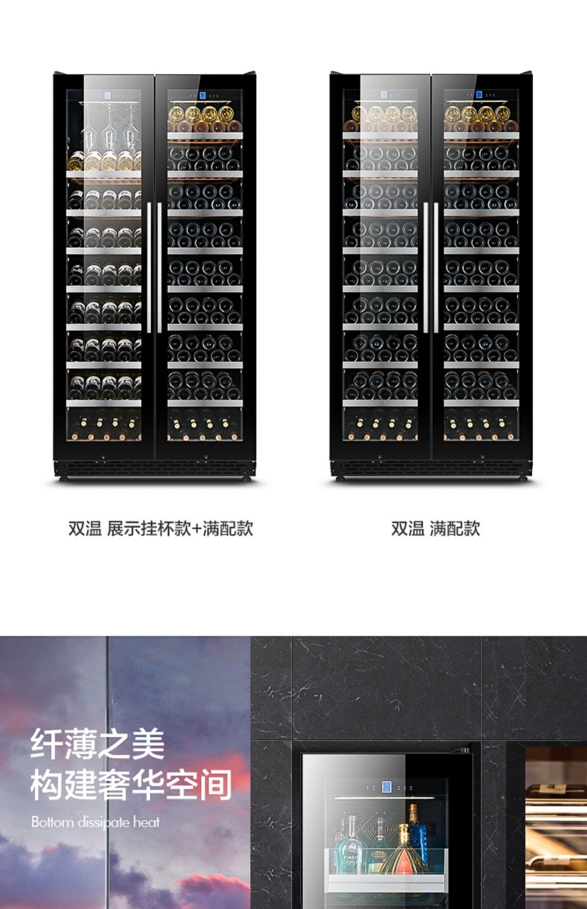 • 이중문/이중온도 [530 얇은 모델] 디스플레이 행잉 컵 + 와인 캐비닛 전체 장착
