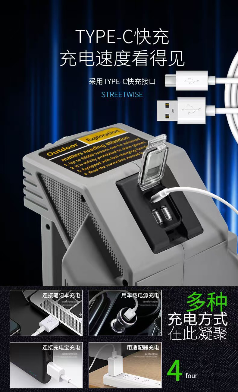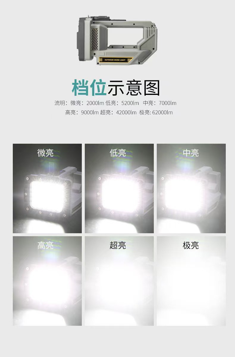국경 간 새로운 거대한 작업 빛 거대한 밝은 탐조등 손전등 모험 캠핑 초장 내구성 휴대용 램프