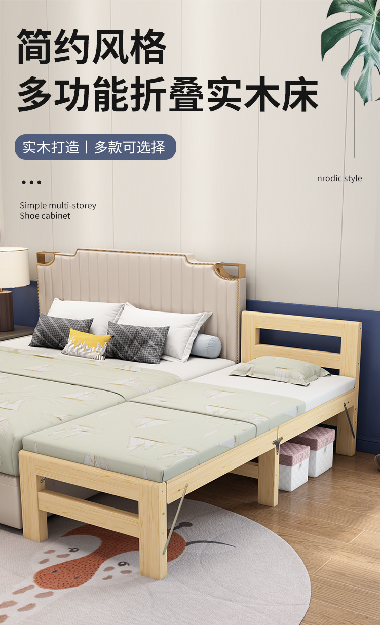 접이식 침대 확장 확장 간단한 접이식 침대 솔리드 우드 침대 엑스트라 침대 접합 침대 원활한 침대 침대 보드스토어 가기