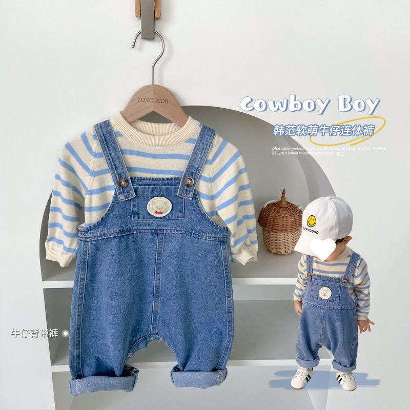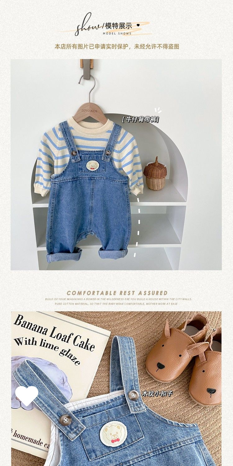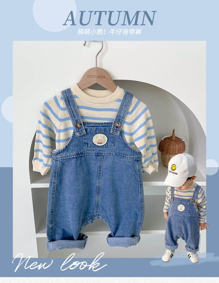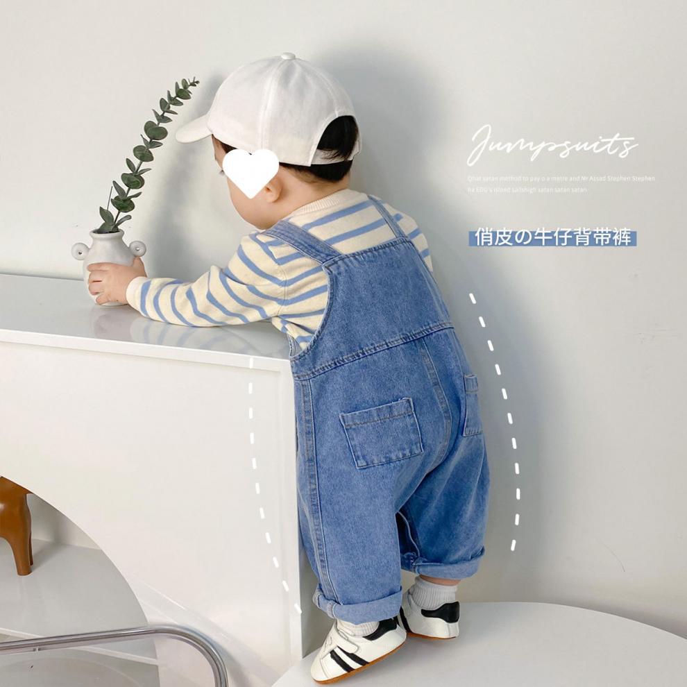 봄과 가을 아기의 씻은 데님 버클 바지 소년 소녀 바지 아기의 가을 캐주얼 높은 허리 바지스토어 가기