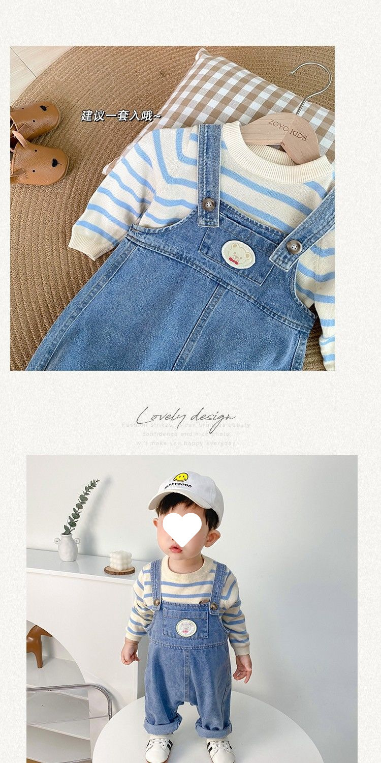 • 그림 컬러 멜빵 + 스트라이프 탑