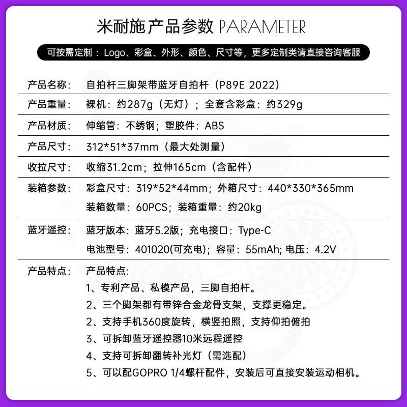 P89E 휴대 전화 셀카 스틱 카메라 비디오 아티팩트 개폐식 바닥 라이브 삼각대 블루투스 리모컨스토어 가기