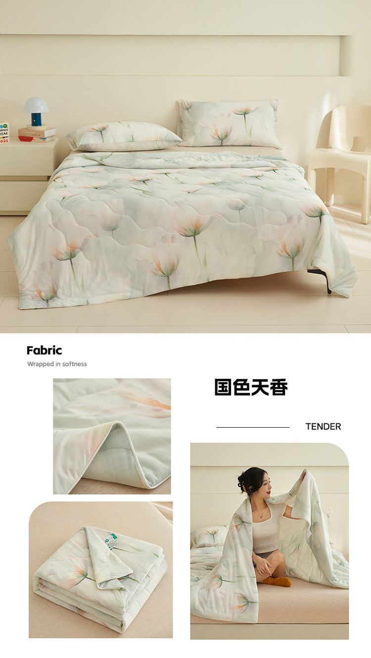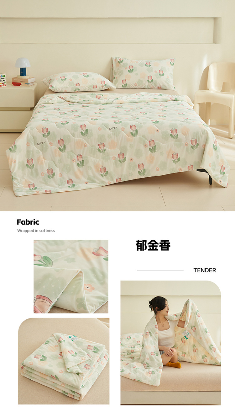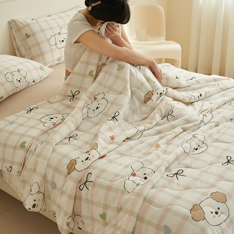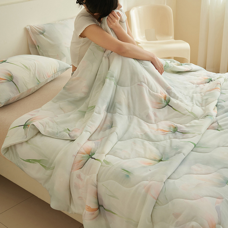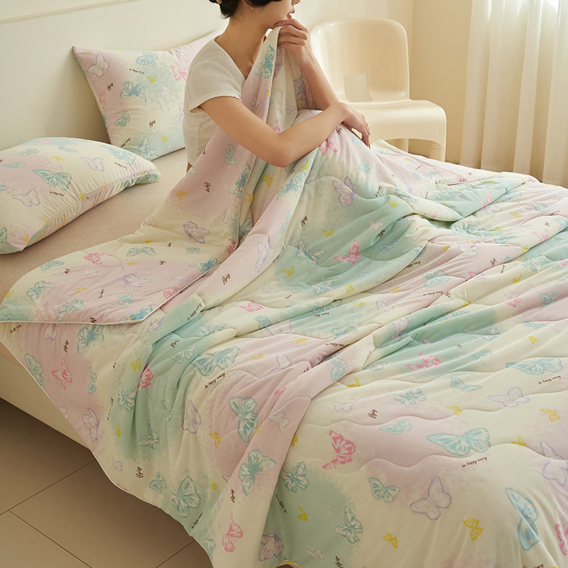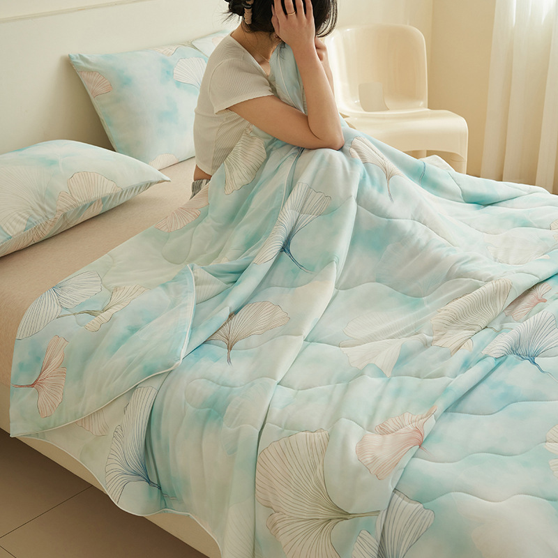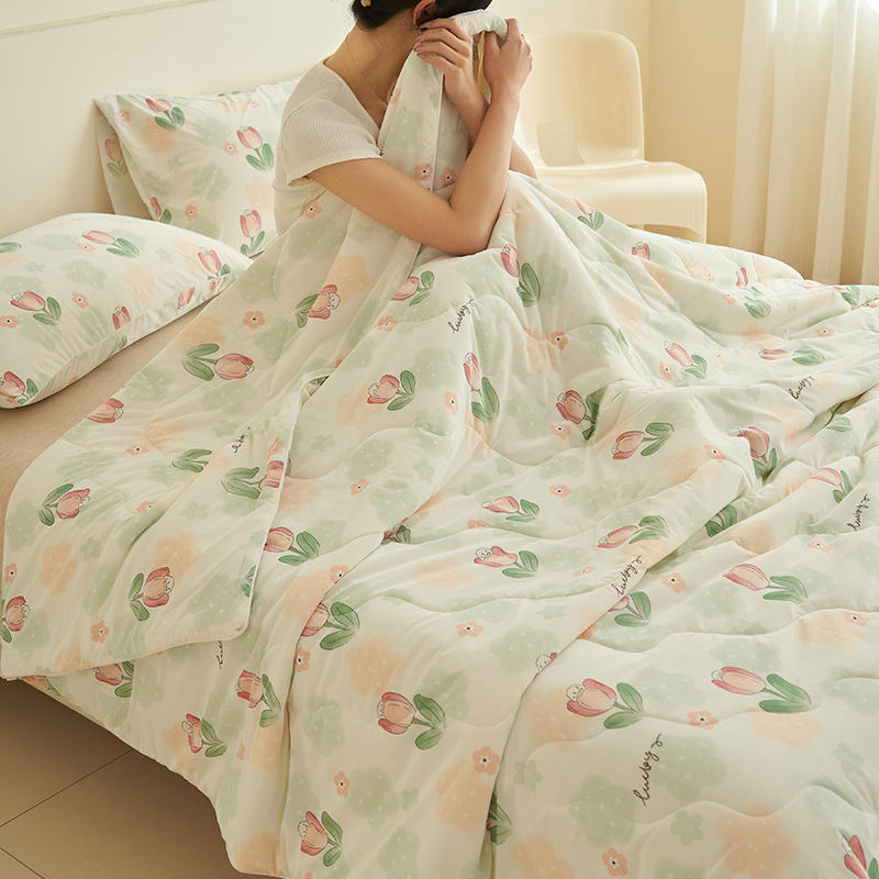 시원한 실크 여름 이불 기계 빨 수있는 에어컨 이불 싱글 학생 기숙사 여름 시원한 이불 부드러운 여름 선물 이불 도매