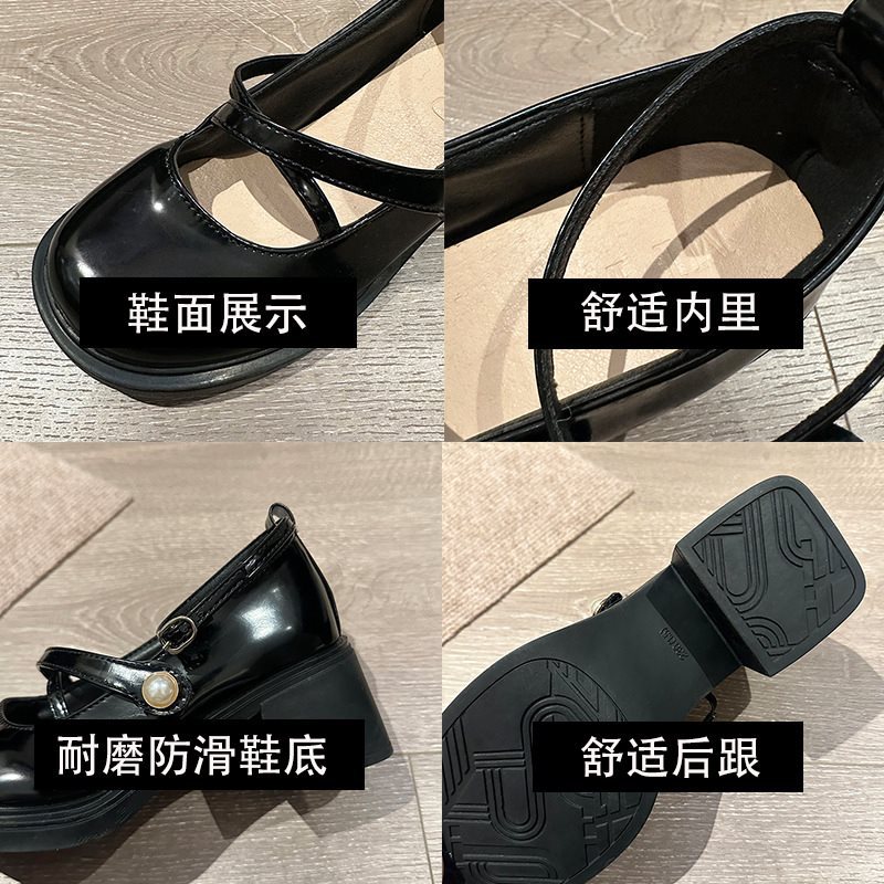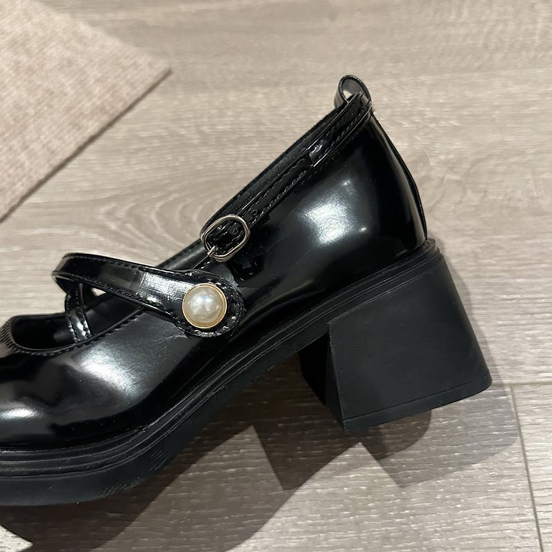 하이힐 2025 새로운 두꺼운 단독 다목적 레트로 메리 제인 신발 영국 스타일 가죽 신발 여성 라운드 토 JK 블랙스토어 가기