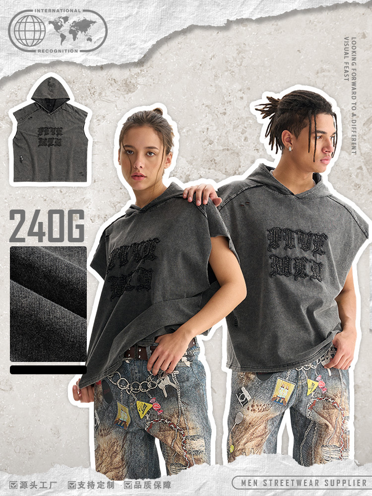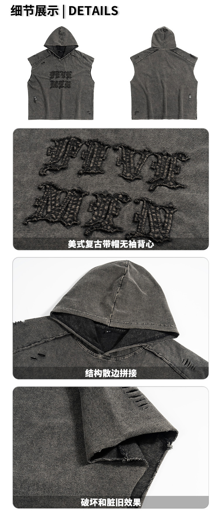 ETAI 남성용 | 하이 퀄리티 아메리칸 레트로 민소매 조끼, 모자 남성 패션 브랜드 박시 적합 바느질 착용 티셔츠