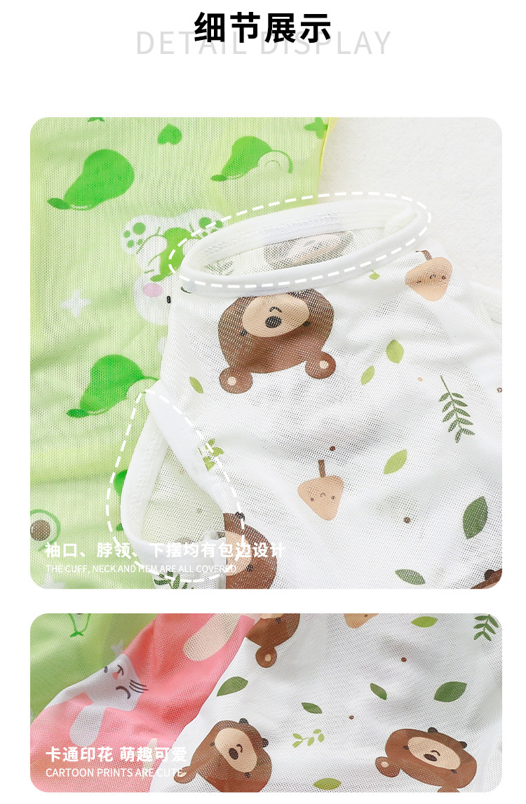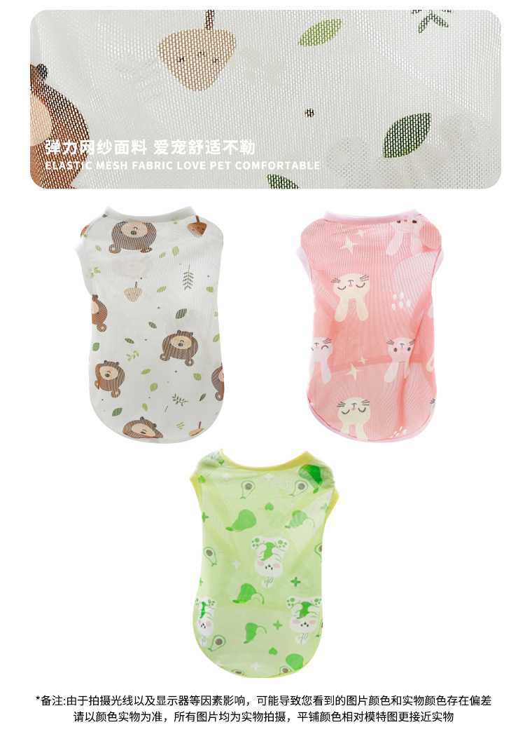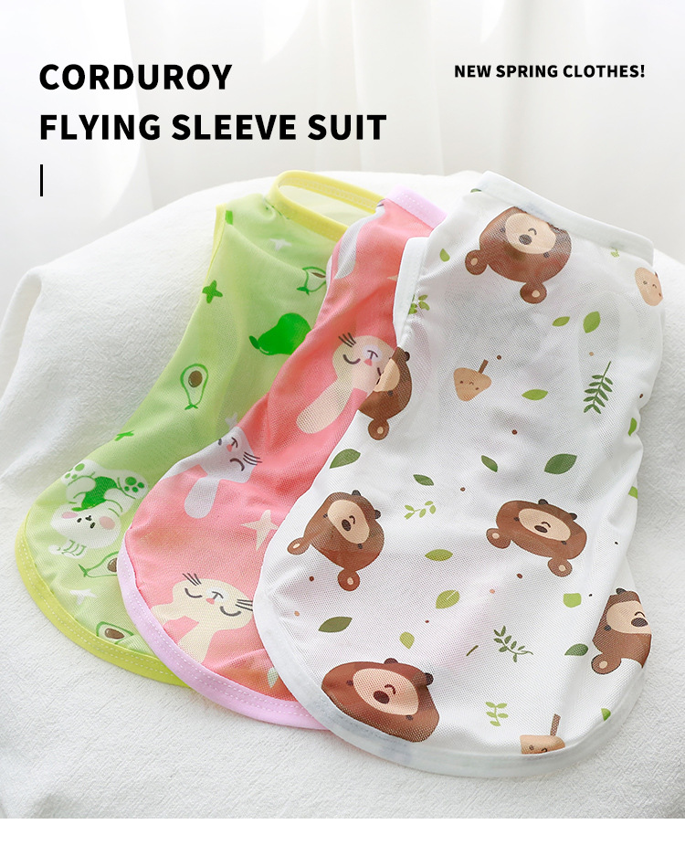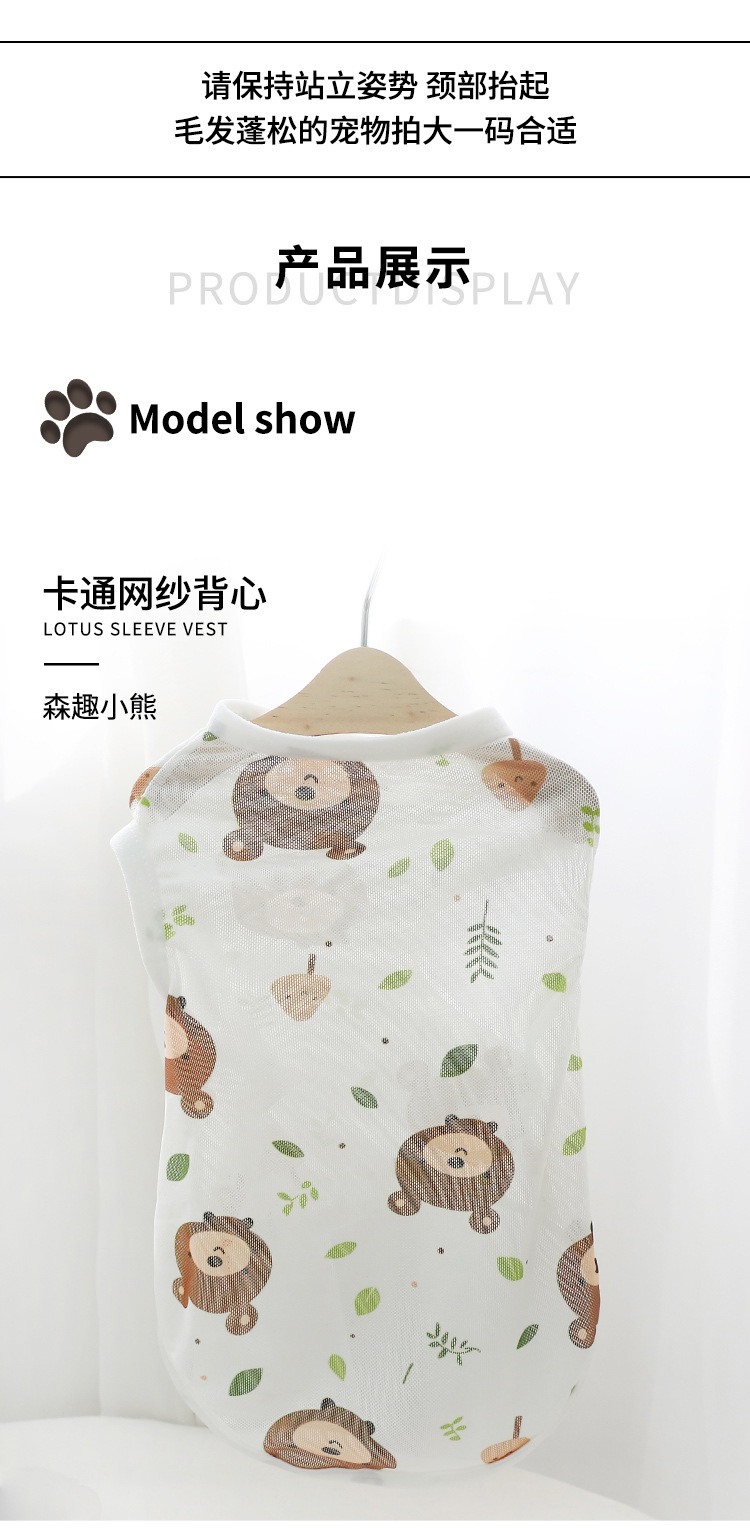 애완 동물 여름 귀여운 만화 작은 동물 인쇄 메쉬 조끼 통기성 개 옷 안티 헤어 공장스토어 가기