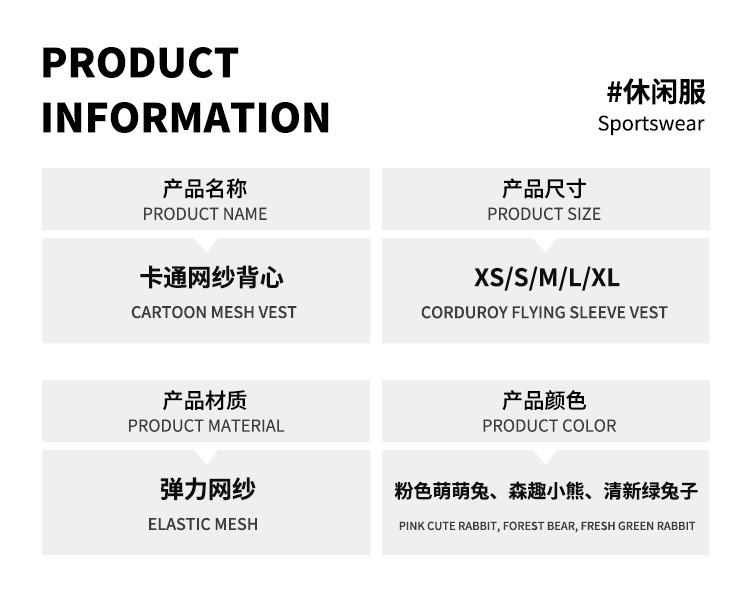 • 핑크 귀여운 토끼 - 만화 메쉬 조끼