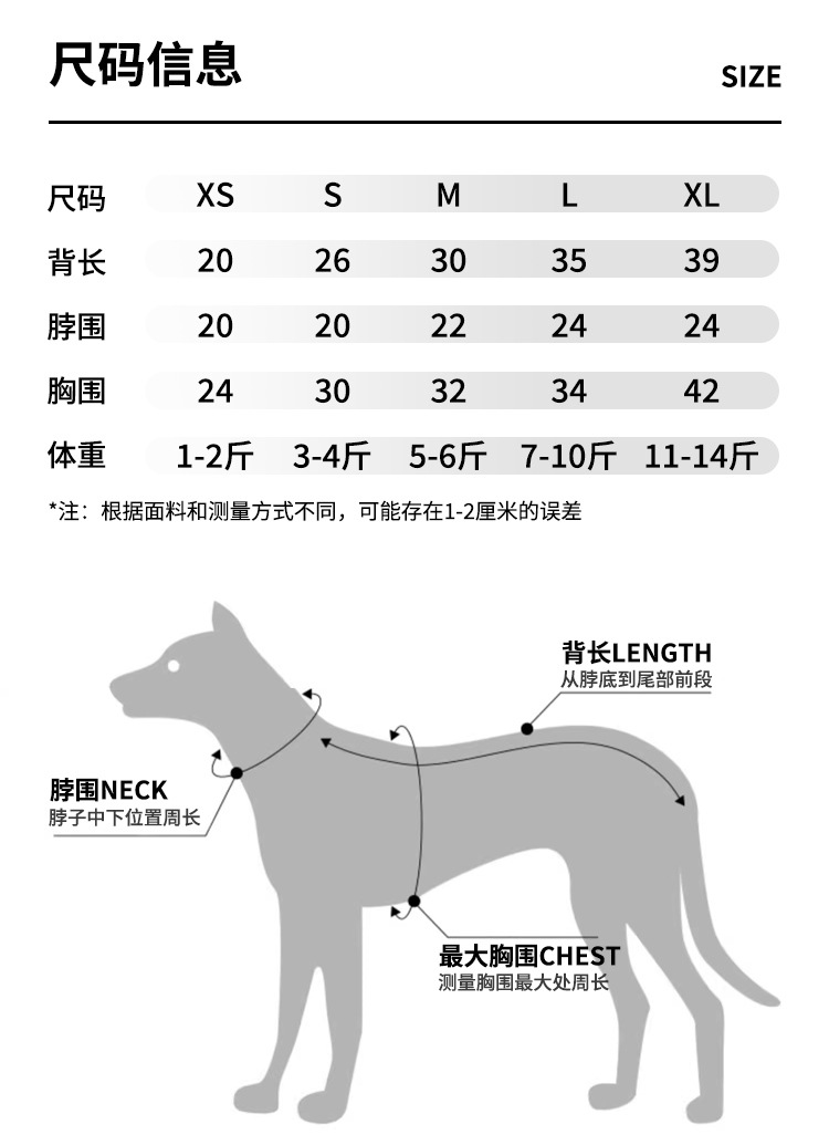 • XS 사이즈는 0.5-1.0kg에 맞습니다