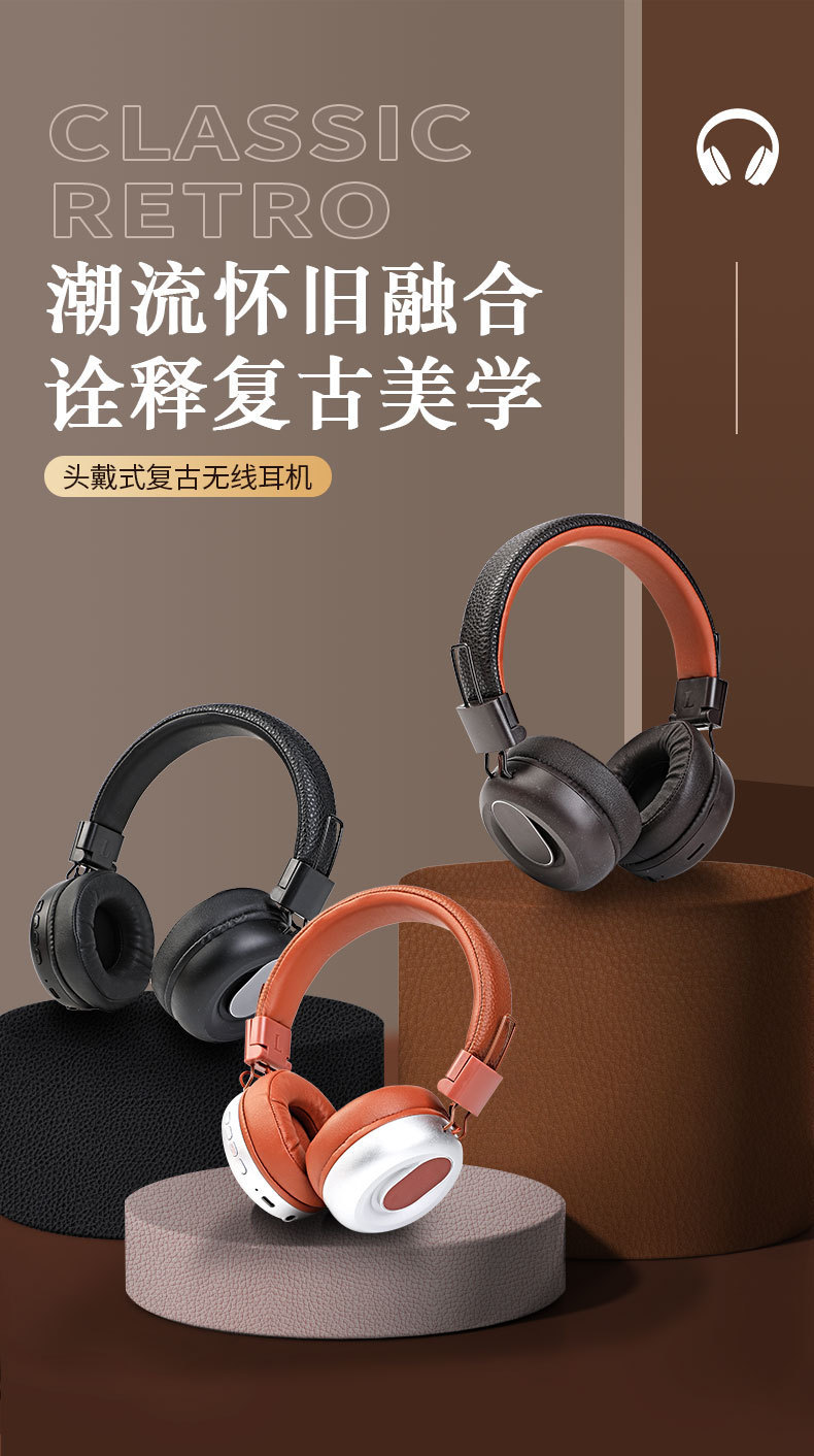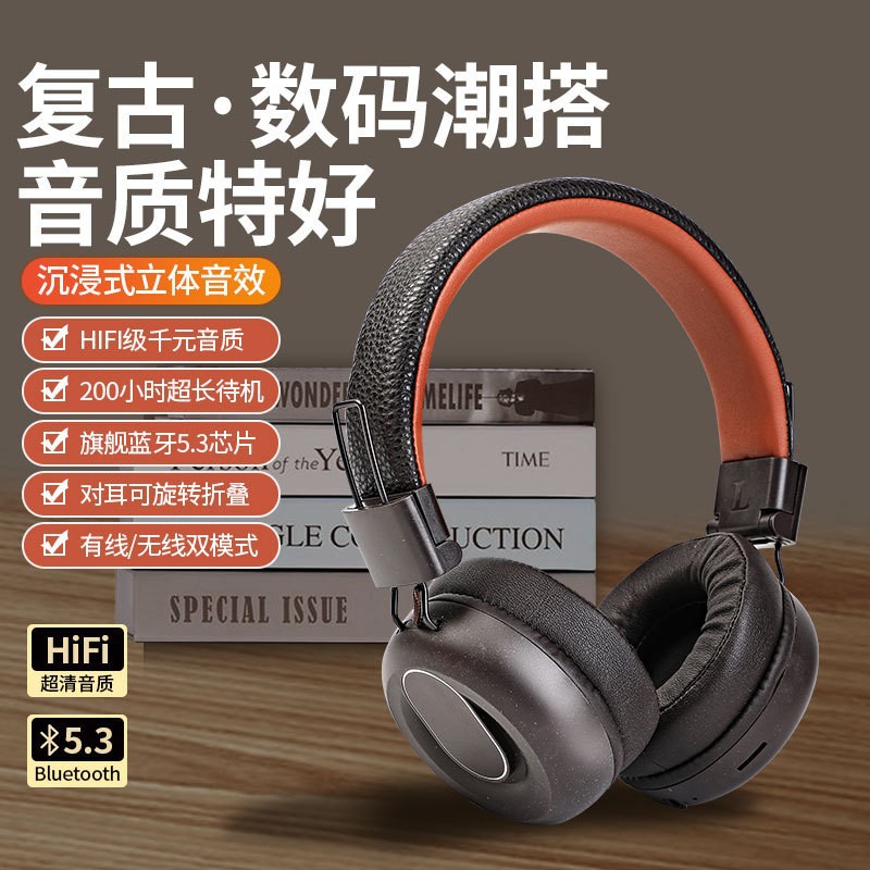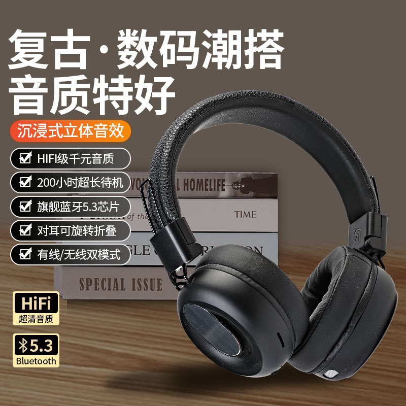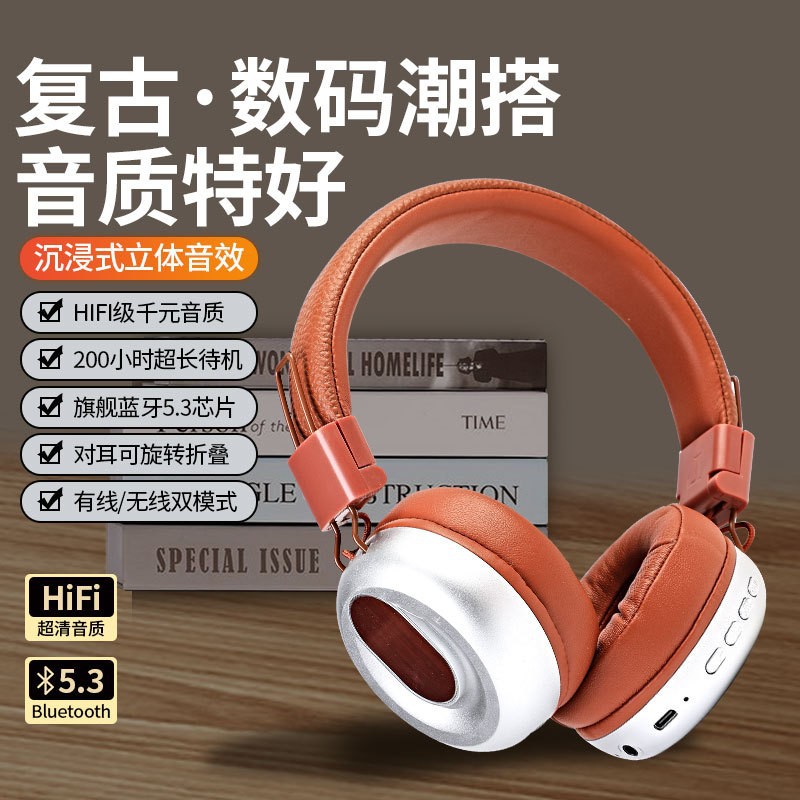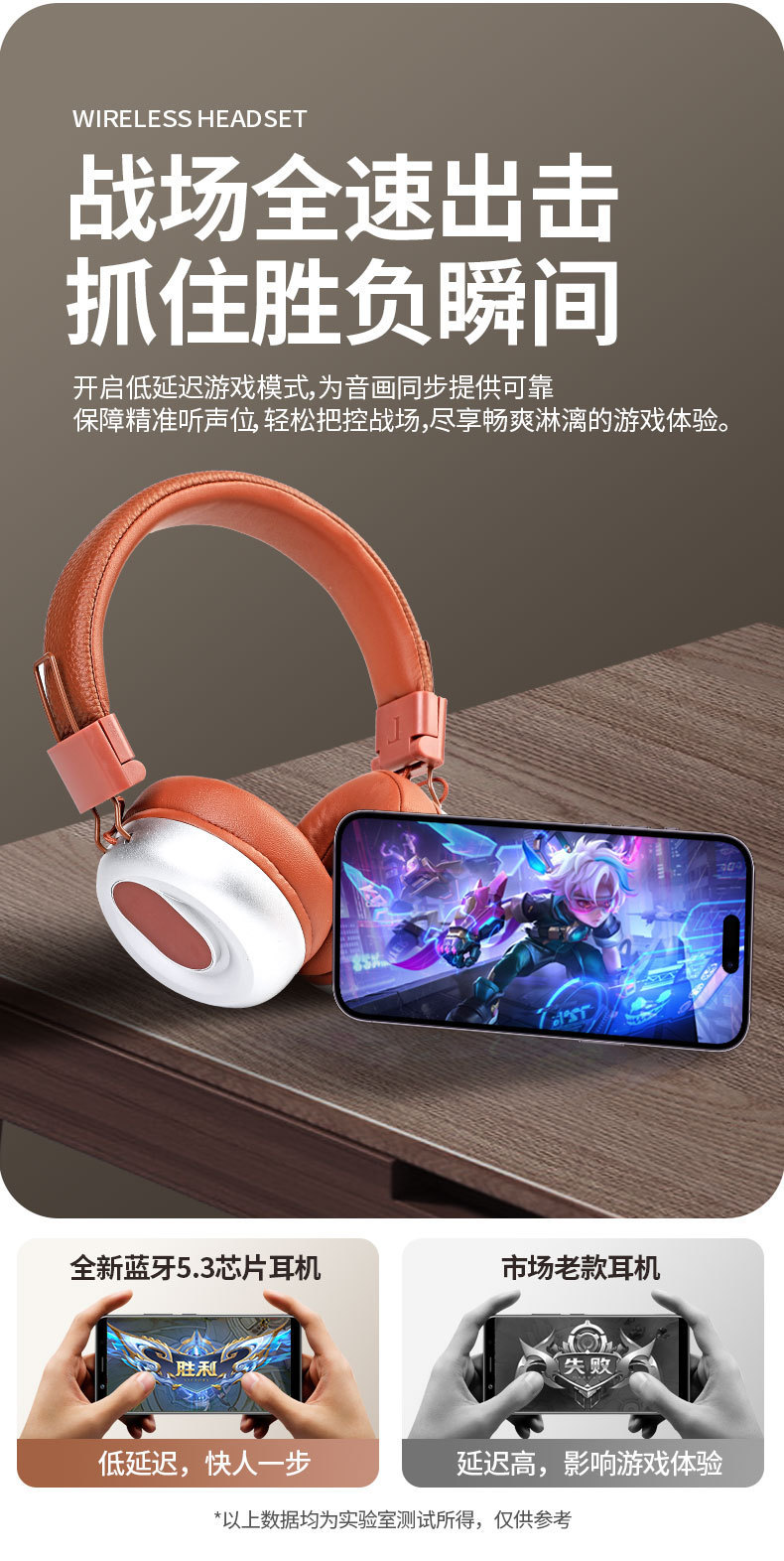 2025 새로운 레트로 헤드셋 전자 스포츠 블루투스 헤드셋 5.3 이어머 무선 헤드셋 긴 내구성 소음 감소