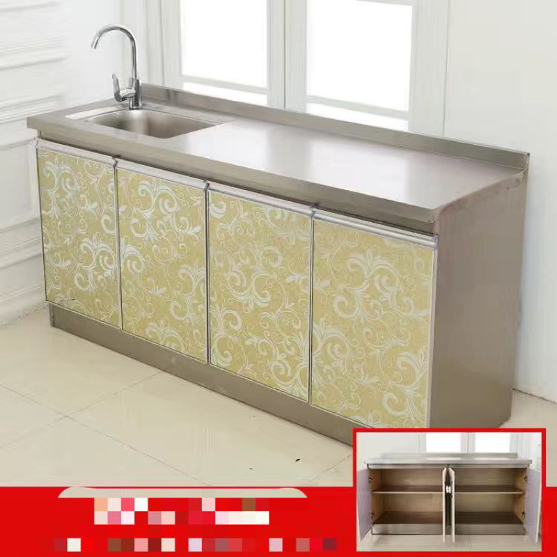 스테인레스 스틸 조리대 간단한 주방 캐비닛 가구 경제 스토브 캐비닛 찬장 물 분지 캐비닛 수분 방지 쉬운 청소 대외 무역 도매