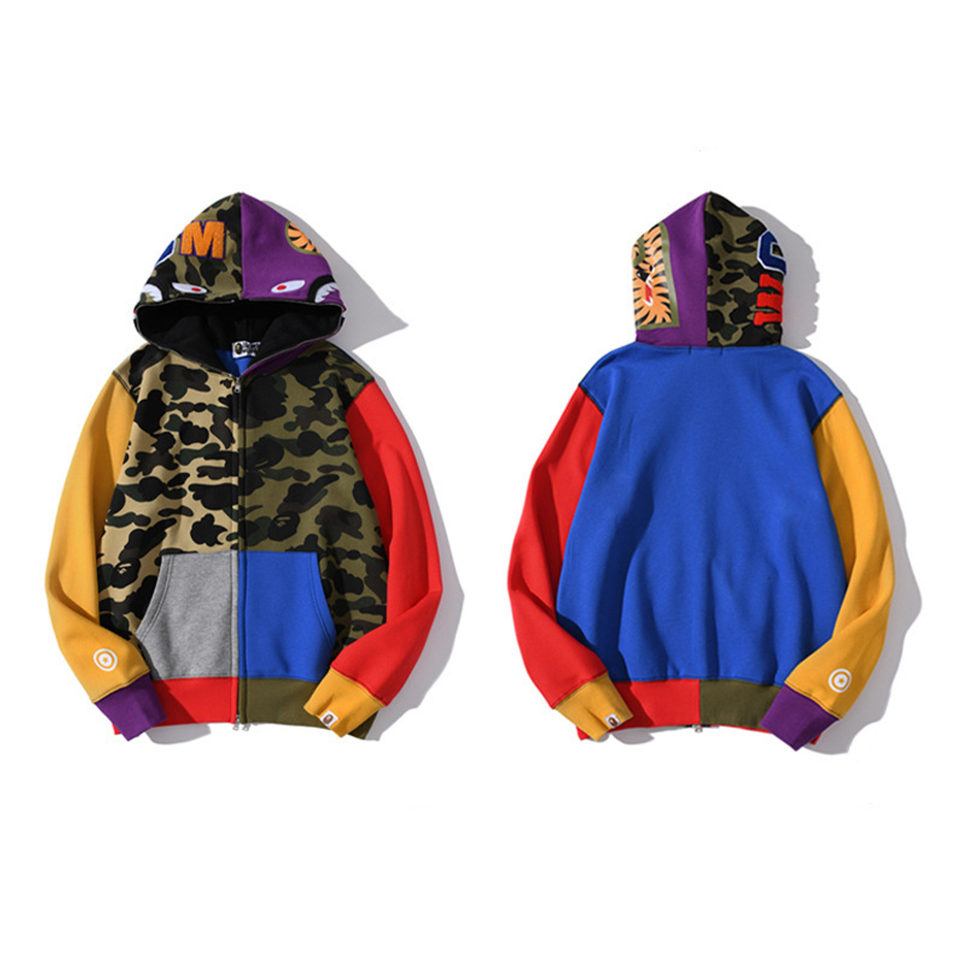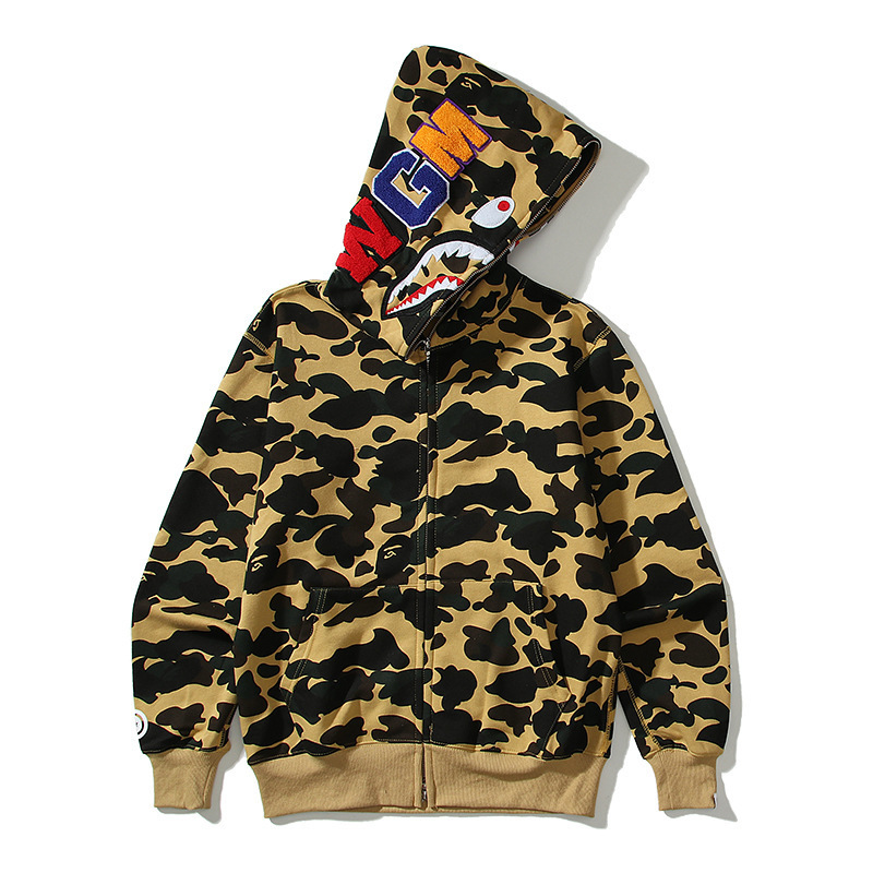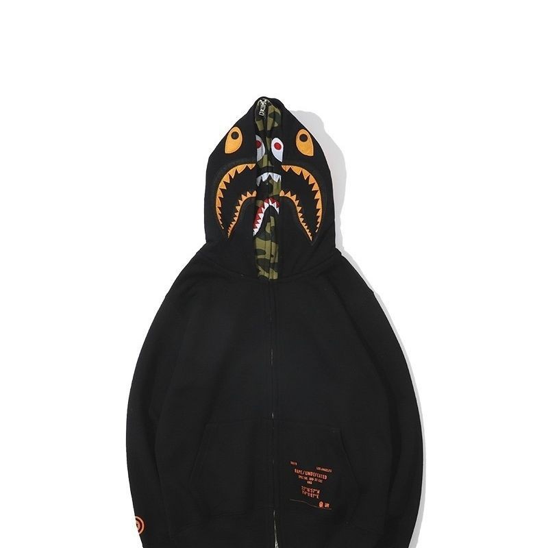 일본 트렌디 한 상어 위장 지퍼 더블 모자 스웨트 셔츠 남성 국경 캐주얼 자켓스토어 가기