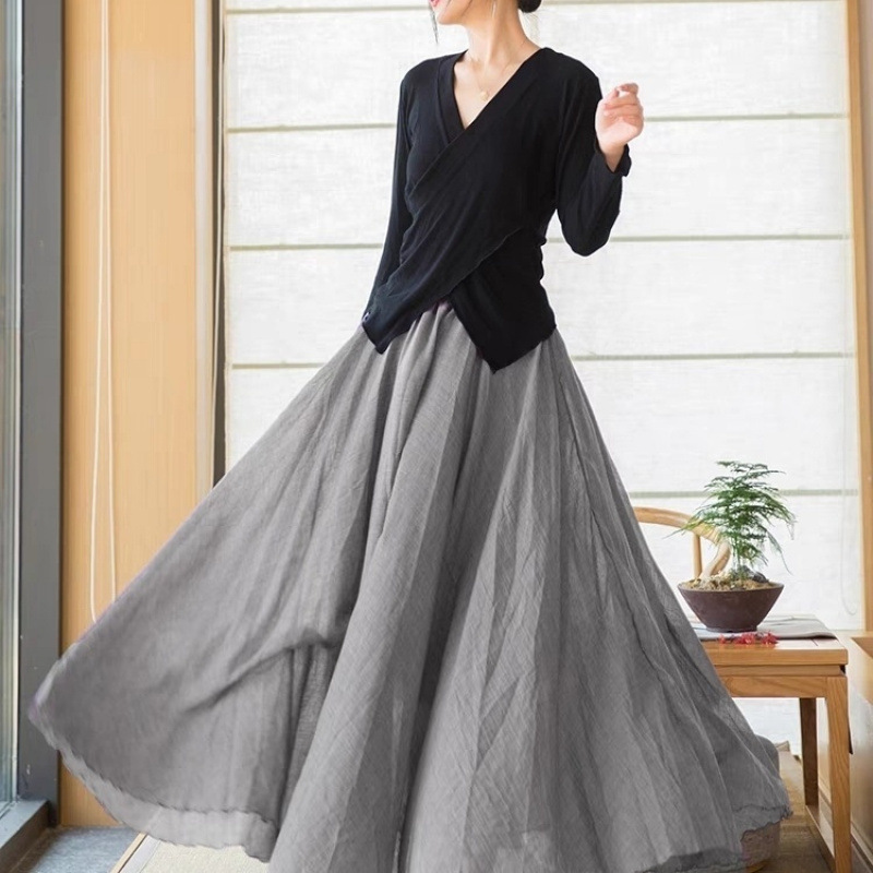 더블 레이어 코튼 및 리넨 대형 스윙 스커트 2025 봄 및 여름 여성 의류, 모리 여성 아티스틱 레트로 올 매치 페어리 스커트