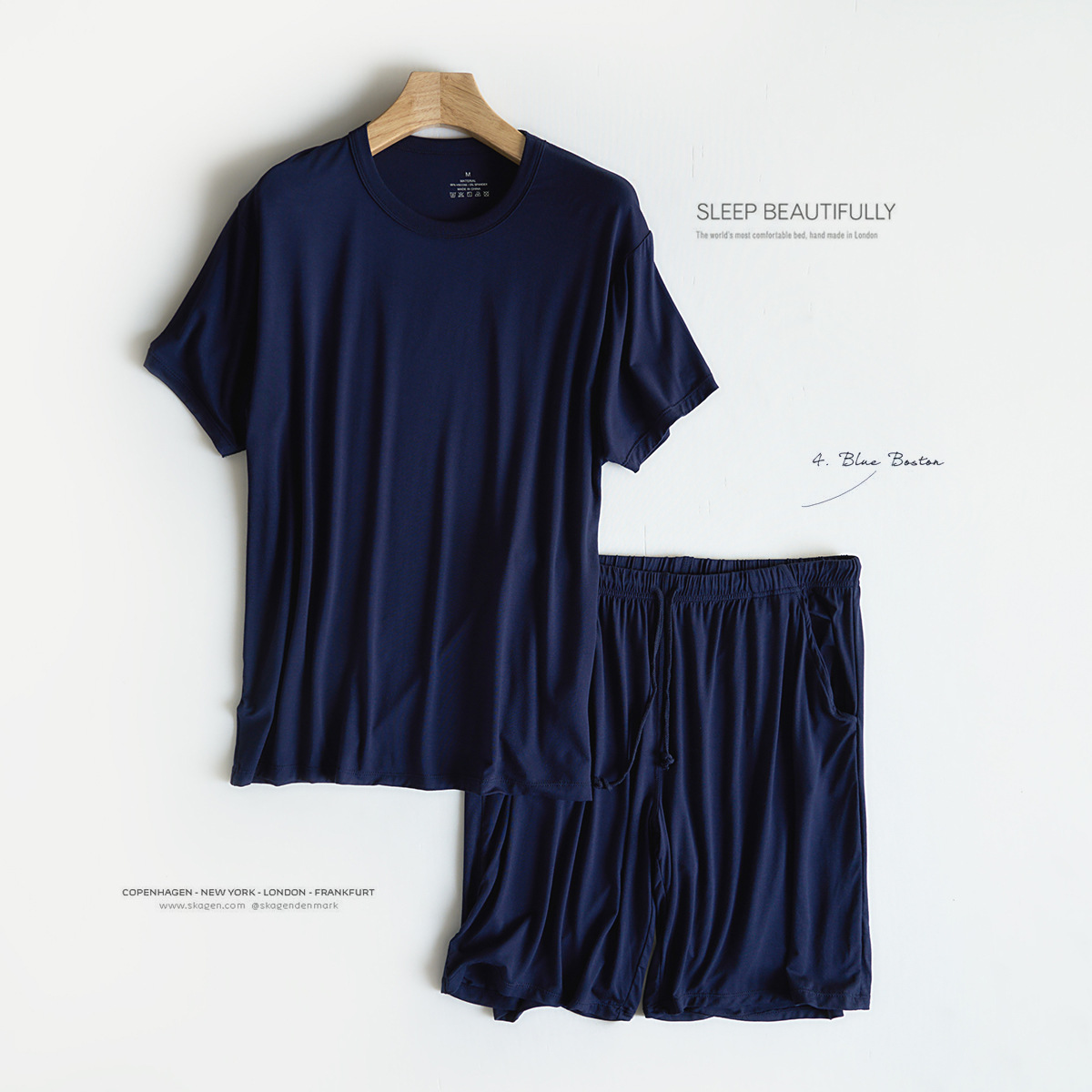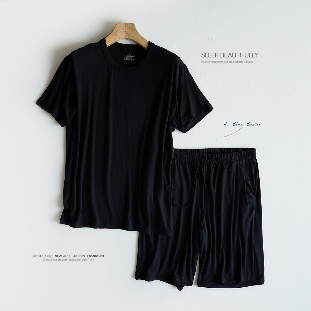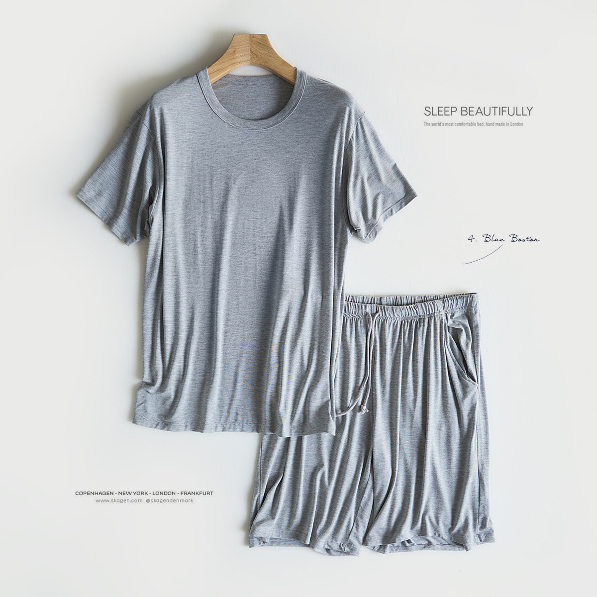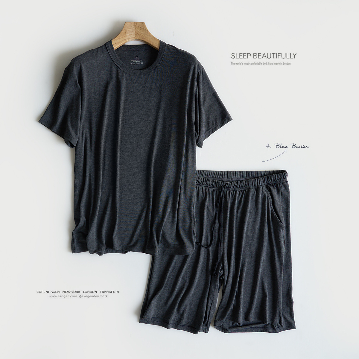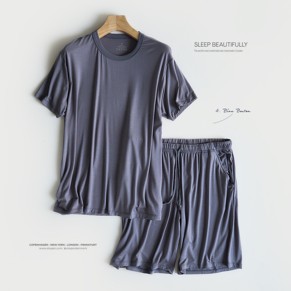 모달 남성 반팔 반바지 크루 넥 잠옷 여름 얇은 느슨한 캐주얼 홈 의류 세트 국경 재고스토어 가기