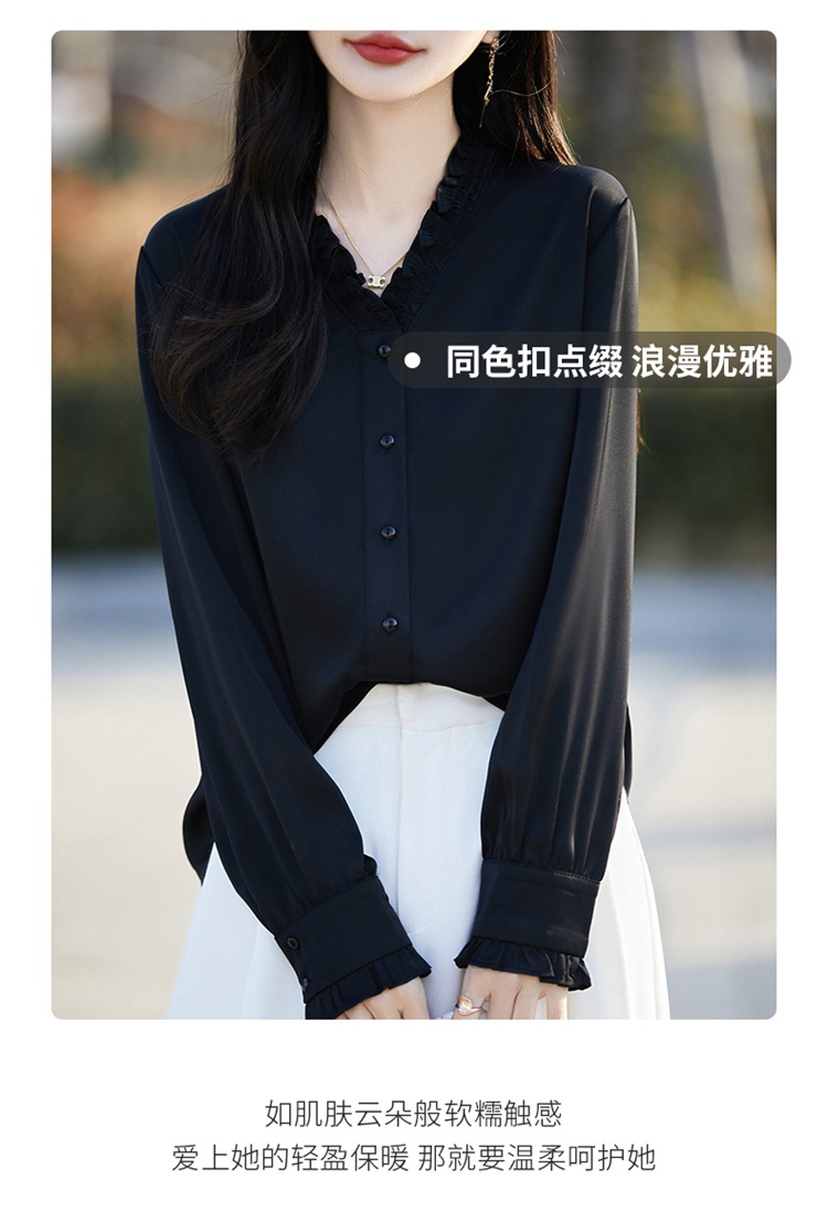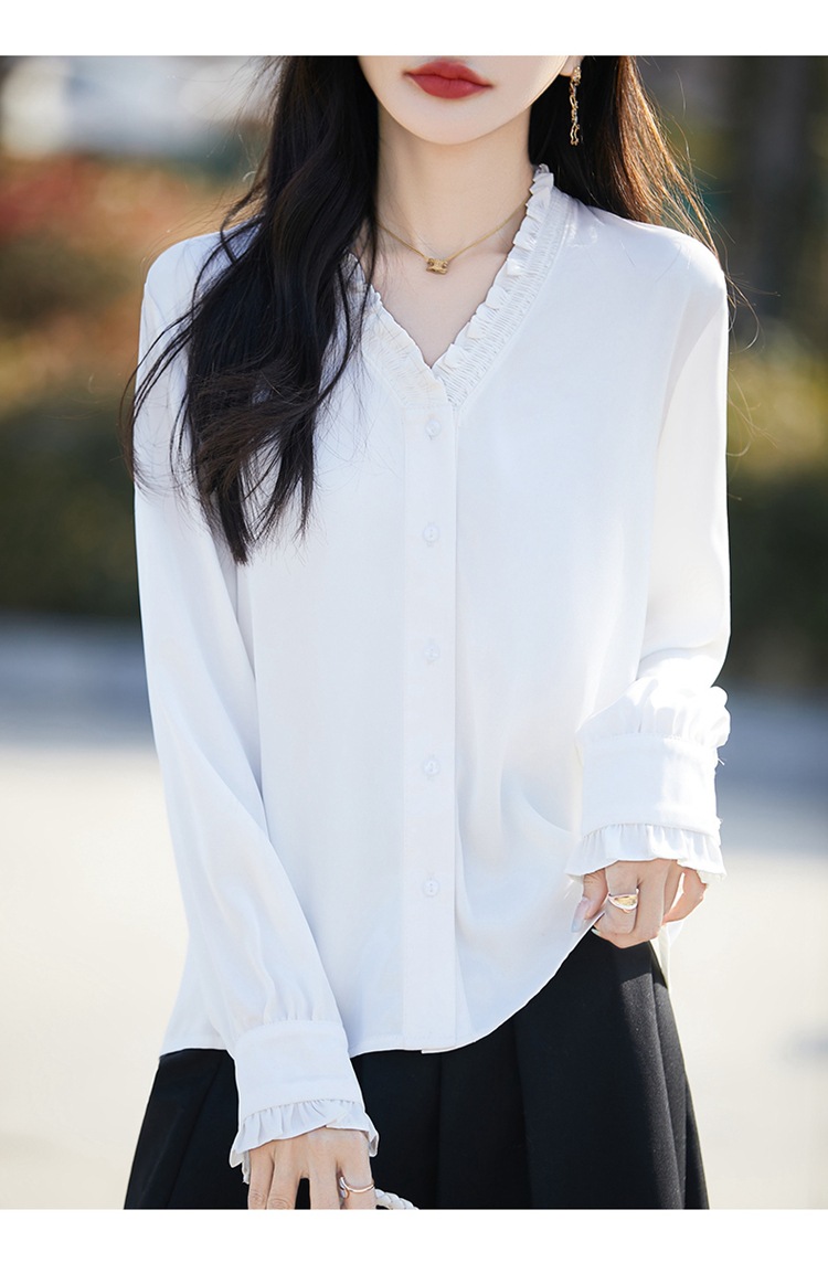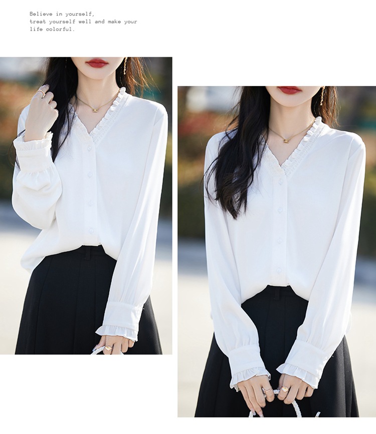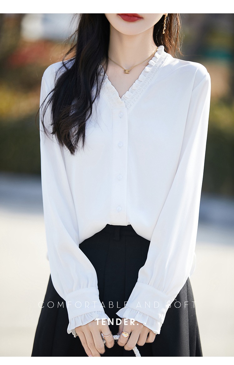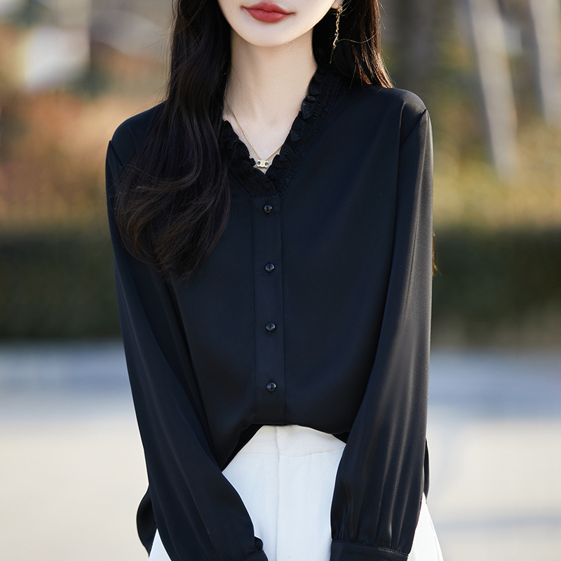 우아한 머플 블라우스 여성용 재킷 셔츠 우아한베이스 카디건 내부 패션 탑 긴 소매 올 매치