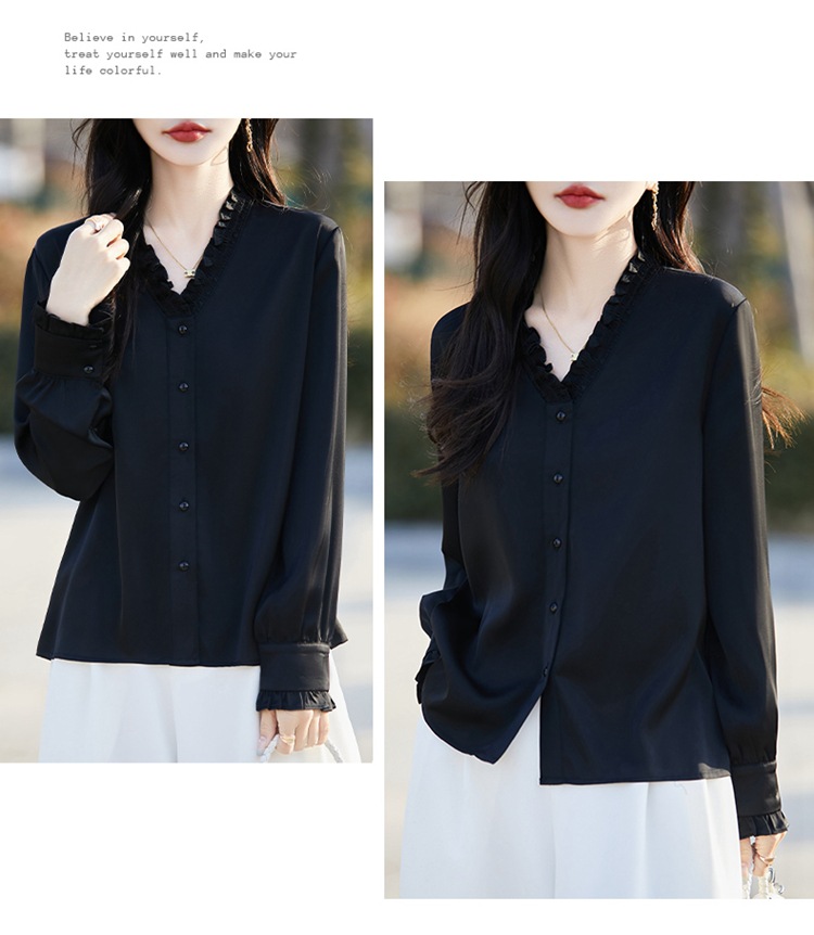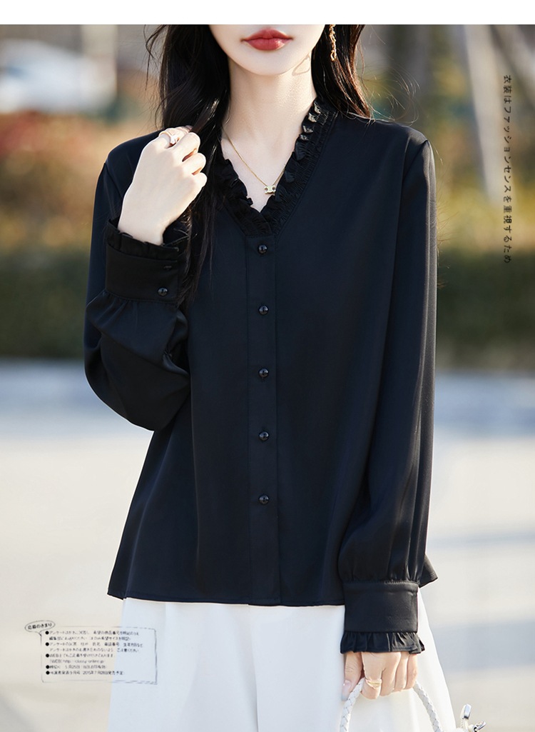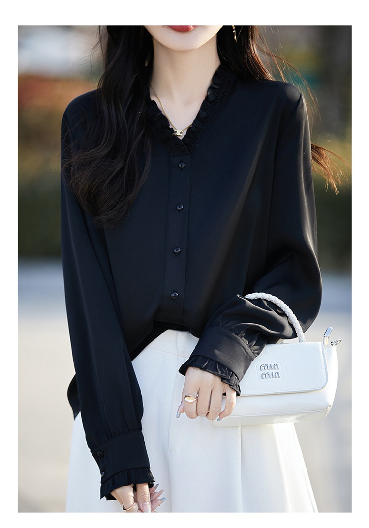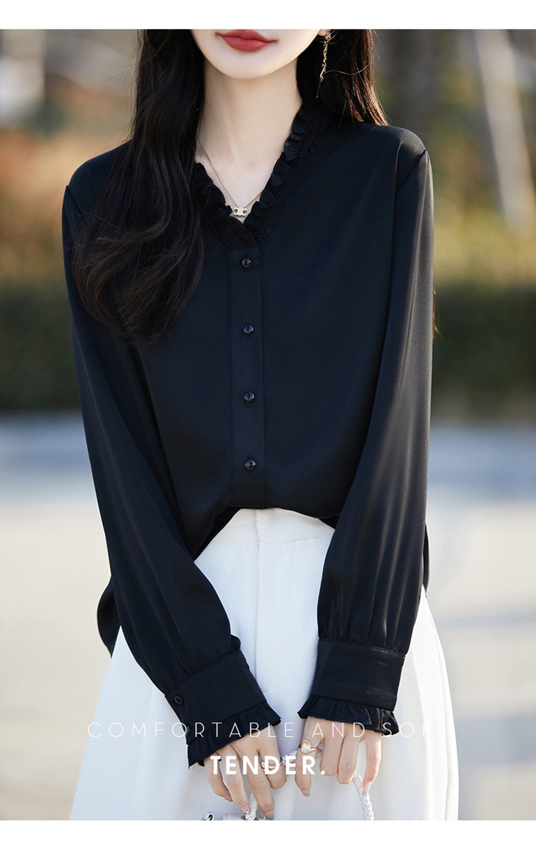 우아한 머플 블라우스 여성용 재킷 셔츠 우아한베이스 카디건 내부 패션 탑 긴 소매 올 매치