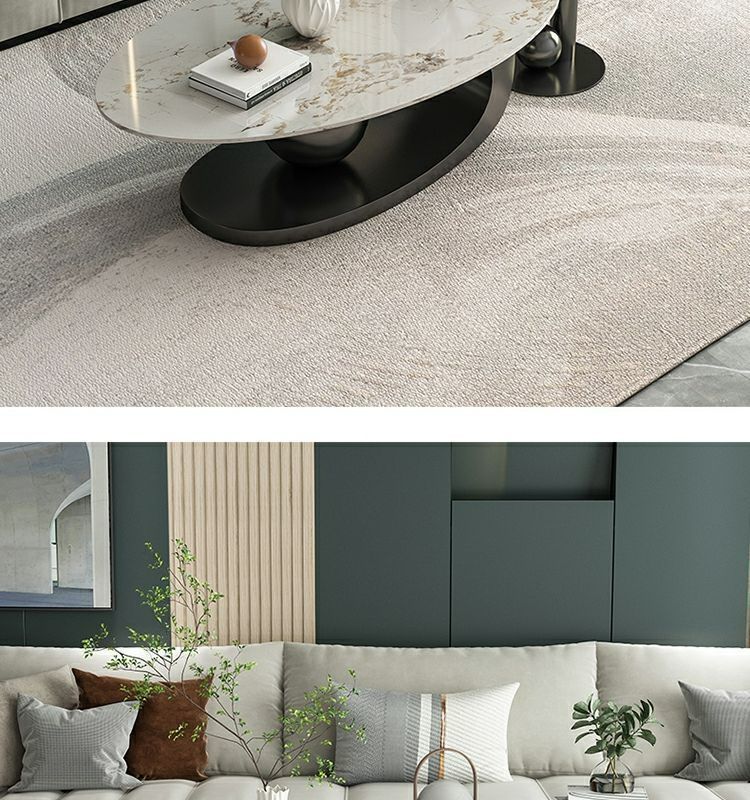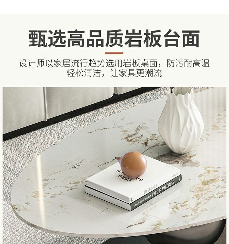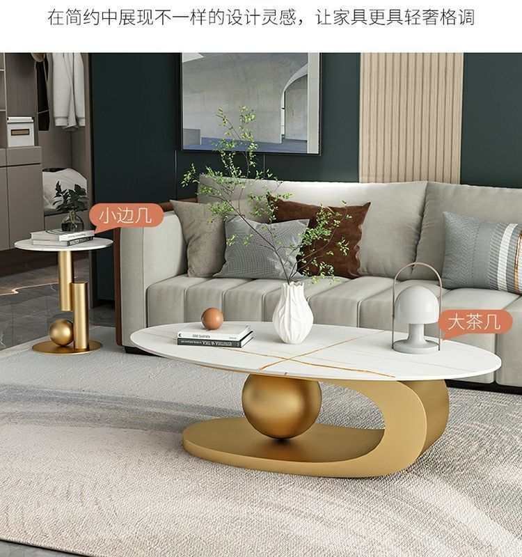 라이트 럭셔리 작은 아파트 록 플레이트 타원형 커피 테이블 렌탈 룸 커피 테이블 홈 거실 인기 테이블 인터넷 연예인 간단
