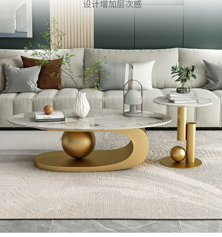 라이트 럭셔리 작은 아파트 록 플레이트 타원형 커피 테이블 렌탈 룸 커피 테이블 홈 거실 인기 테이블 인터넷 연예인 간단스토어 가기
