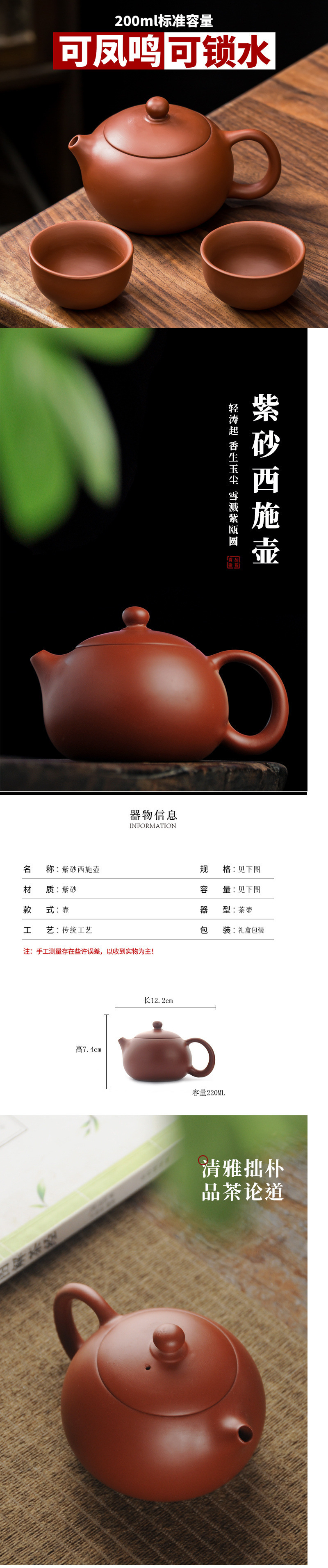 • 280ml Fengming Zisha Xishi 냄비 + 2컵