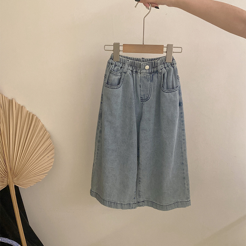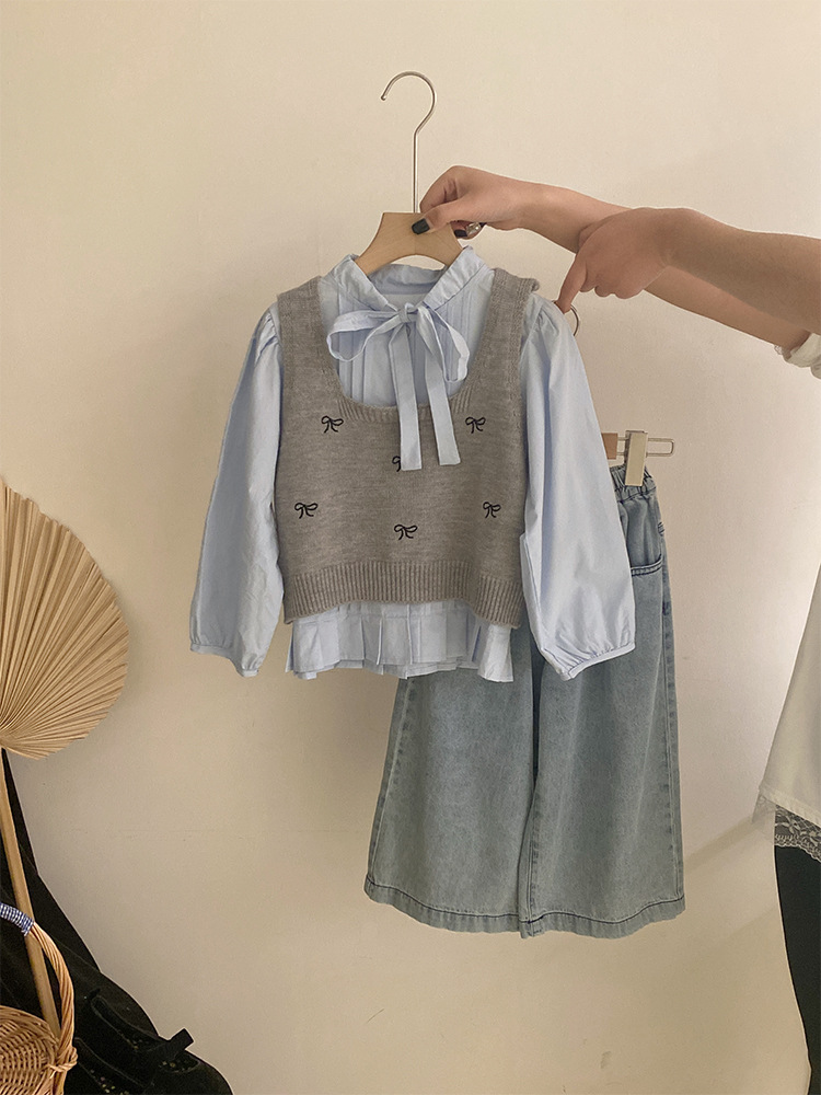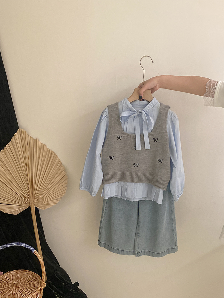 소녀의 봄 2025 세련 된 활 조끼 셔츠 넓은 다리 바지 어린이 한국어 착용 3 피스 유행 세트스토어 가기