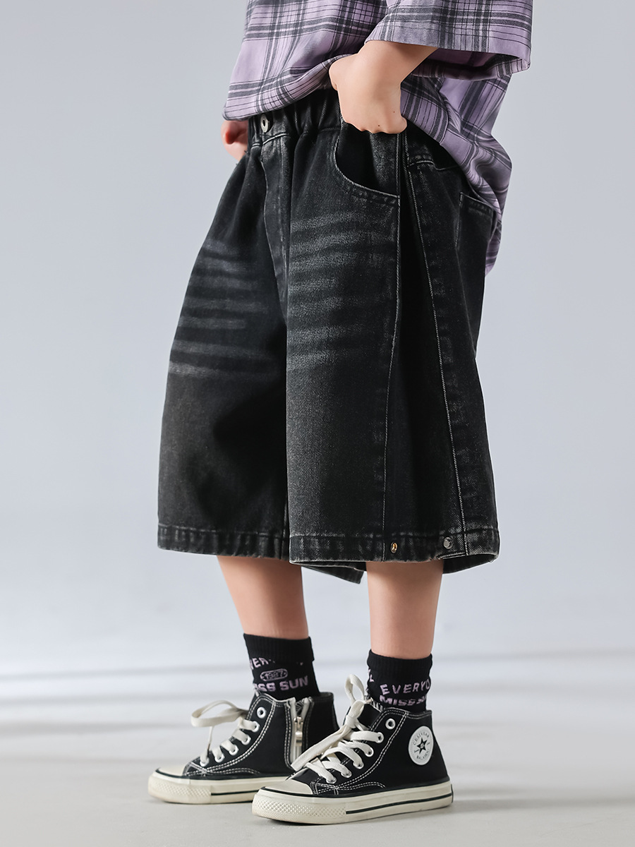 남아 여름 티셔츠 2025 신상 아동 한국 스타일 스트라이프 반팔 세트 스포츠 청바지 반바지 아동복 트렌드