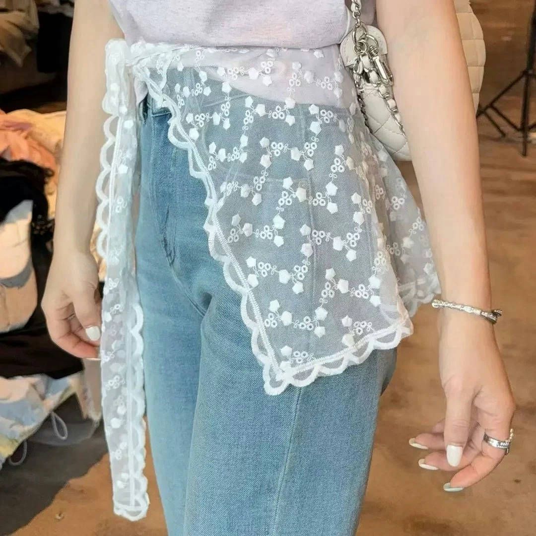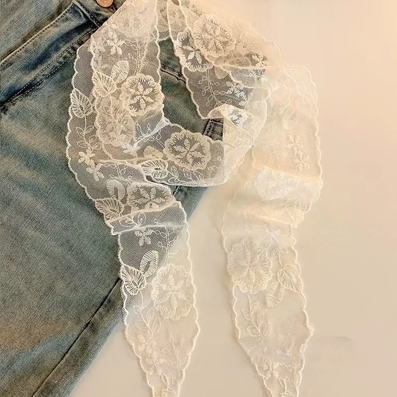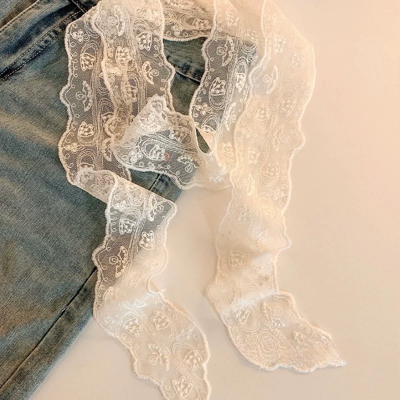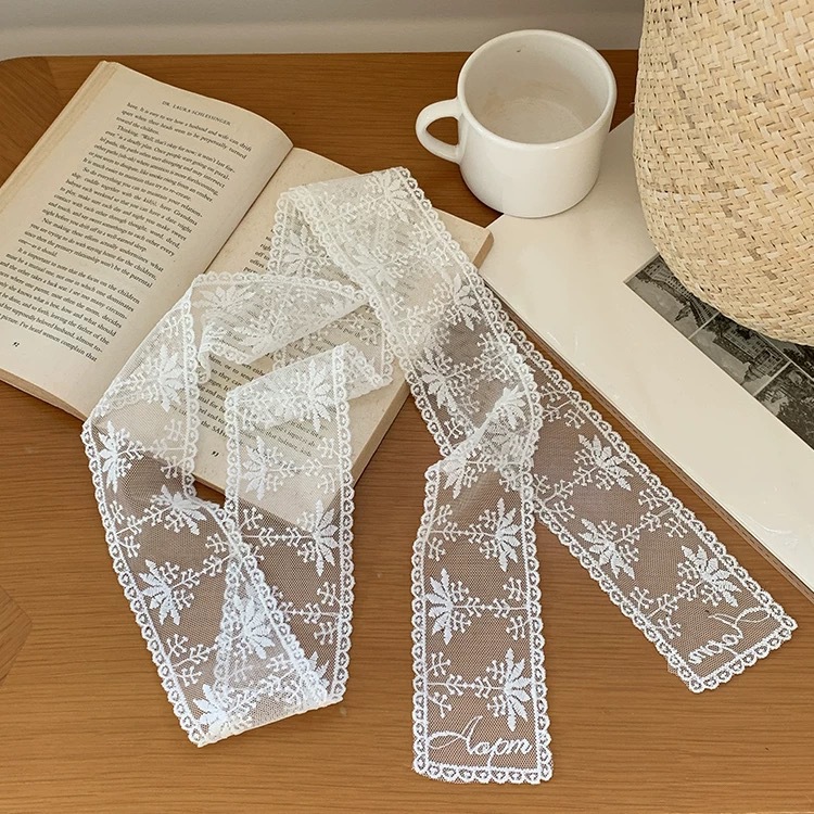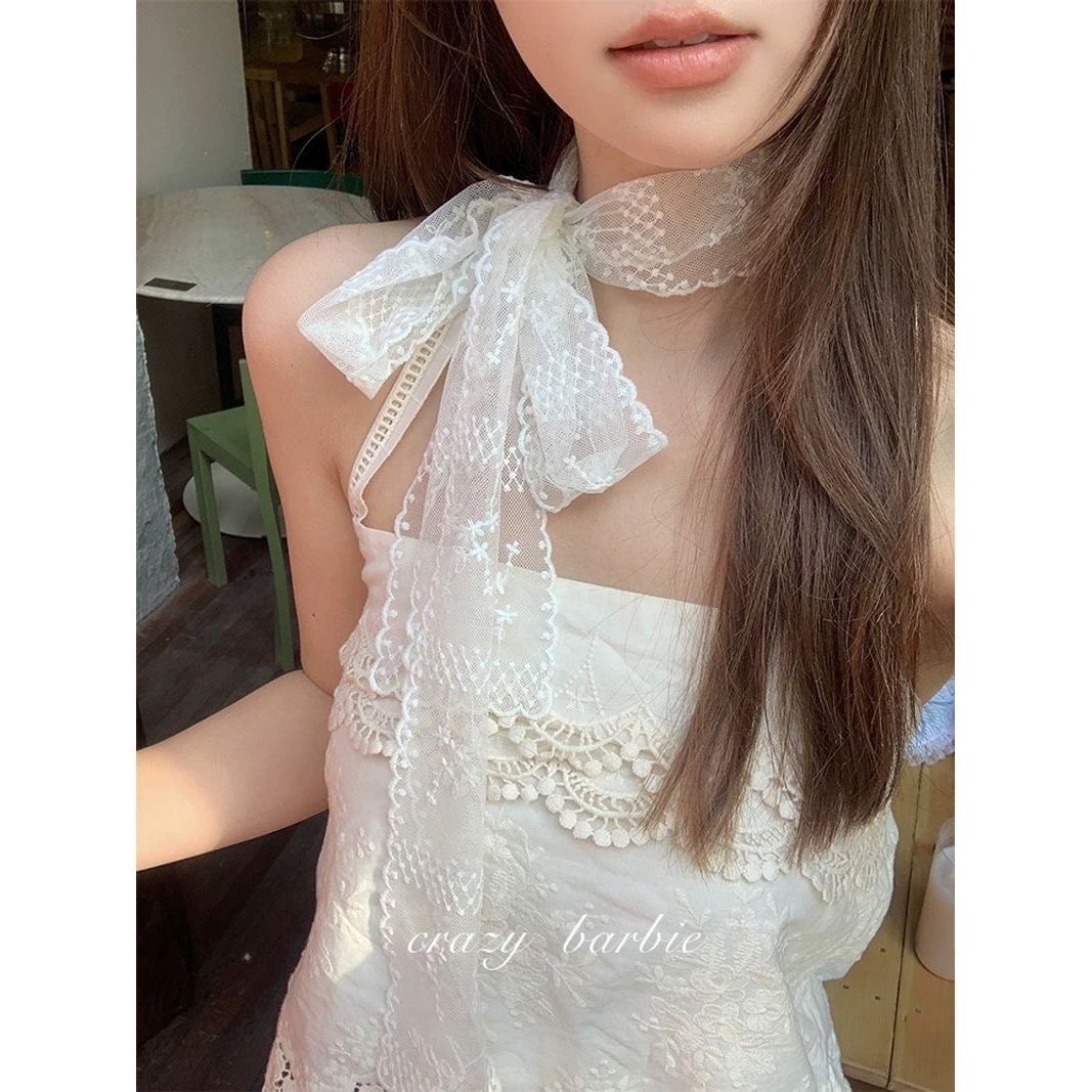 한국 레이스 긴 스카프 리본 작은 스카프 여성의 봄과 여름 얇은 헤어 밴드 넥타이 가방 작은 스카프 콜라본 목걸이