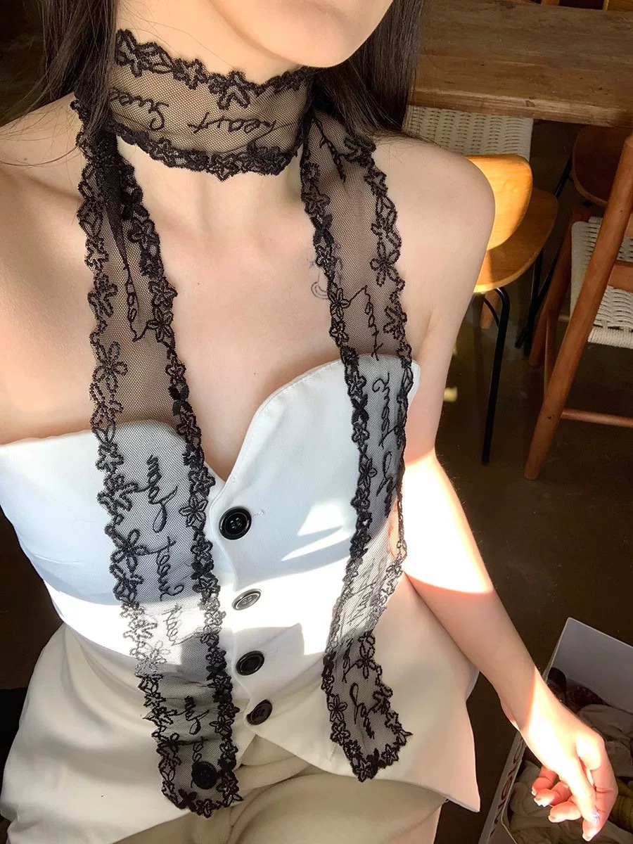 한국 레이스 긴 스카프 리본 작은 스카프 여성의 봄과 여름 얇은 헤어 밴드 넥타이 가방 작은 스카프 콜라본 목걸이스토어 가기