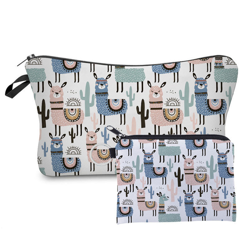 국경 새로운 인쇄 된 만화 폴리 에스터 화장품 가방 동전 지갑 세트 여행 휴대용 화장품 보관 세척 가방스토어 가기