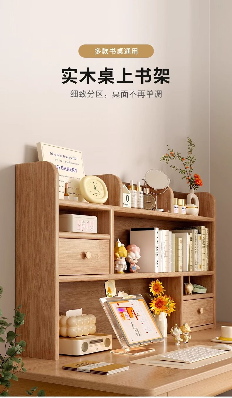 단단한 나무 책장 데스크탑 학생 가정용 책상 보관 랙 어린이 소나무 다층 테이블 책장 보관