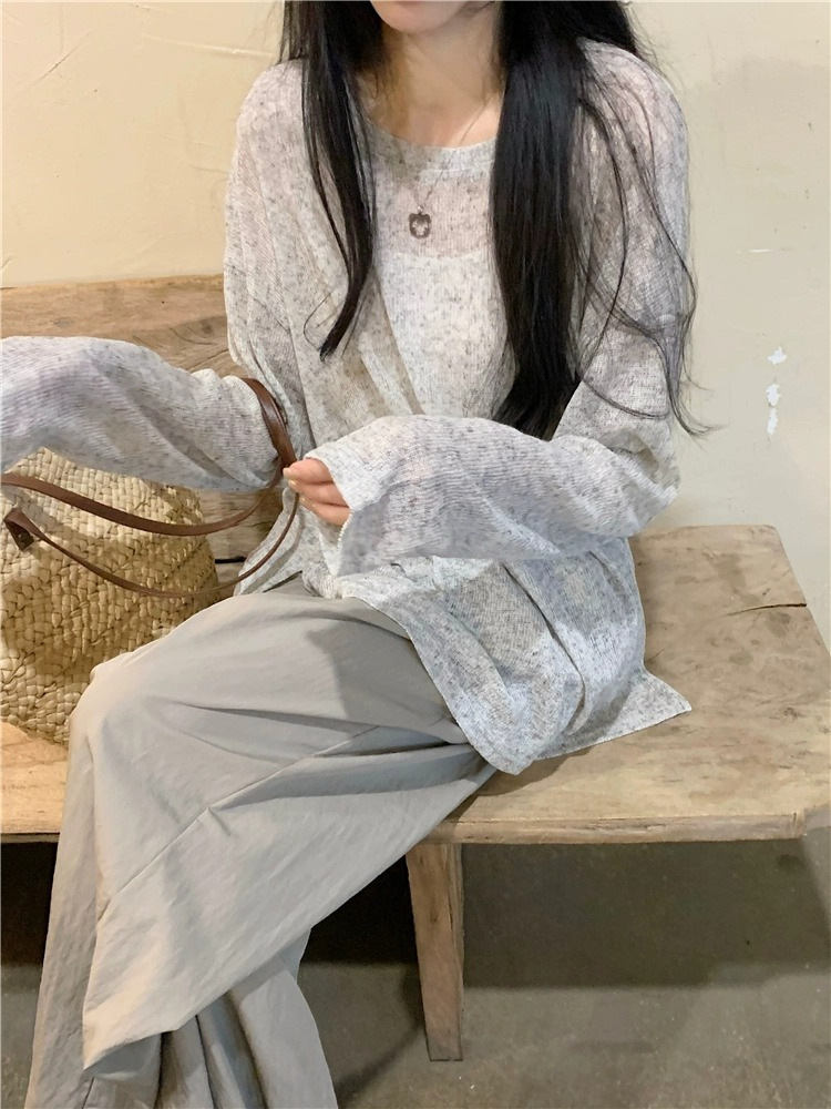게으른 스타일 선 스크린 블라우스 세련된 여름 얇은 선 스크린 긴팔 티셔츠 여성용 느슨한 캐주얼 슬리밍