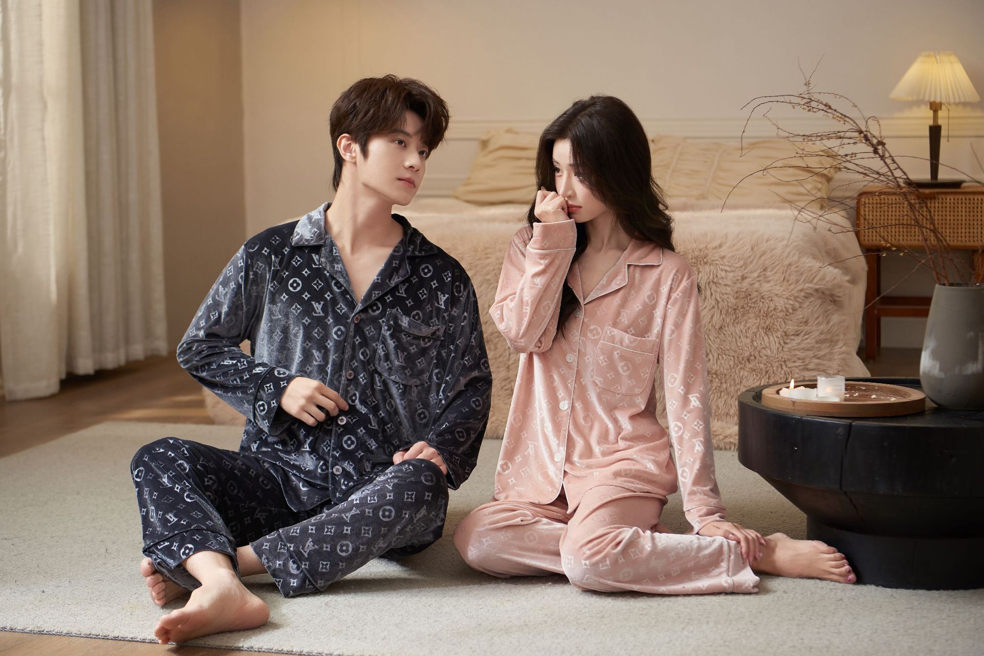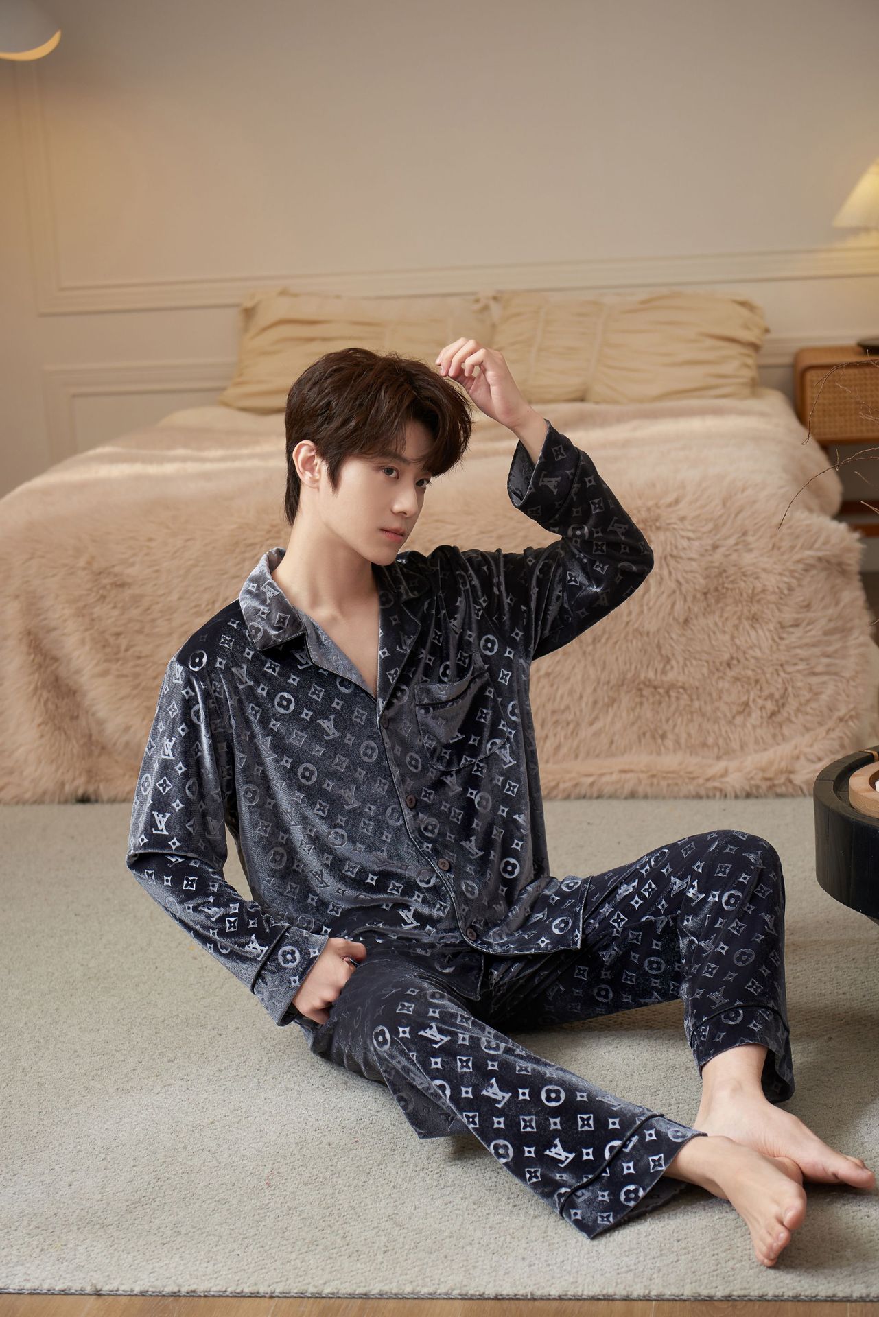 오늘 청나라 예진 벨벳 커플 파자마 한국식 카디건 고급 남성 기모 스타일 세트스토어 가기