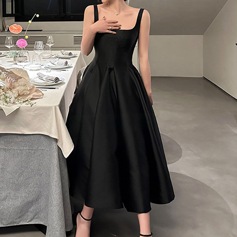 프랑스 라이트 웨딩 원피스 단색 새틴 간단한 작은 호스트 성인 행사 파티 연회 저녁 가운 보통 착용스토어 가기