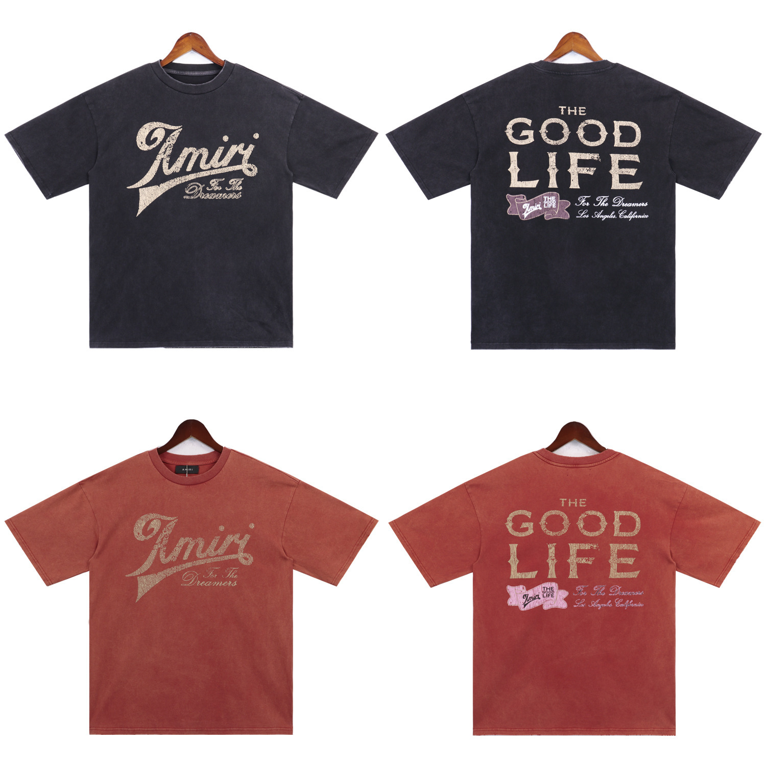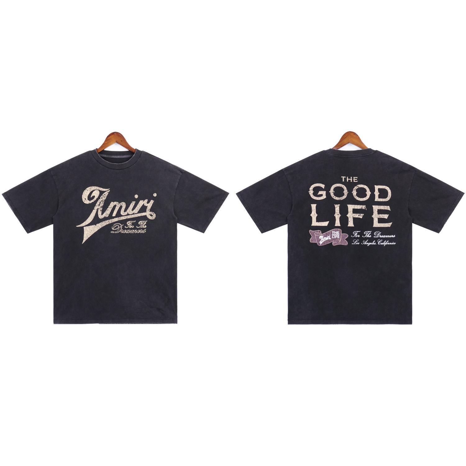 AMIR1 트렌디 브랜드 2025 이른 봄 시리즈 편지 인쇄 세척 물 오래 착용 반팔 하이 스트리트 캐주얼 남성 및 여성 티셔츠스토어 가기