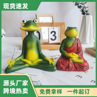 跨境热销禅坐青蛙打坐僧侣庭院瑜伽冥想修行蛙星人树脂工艺品摆件
