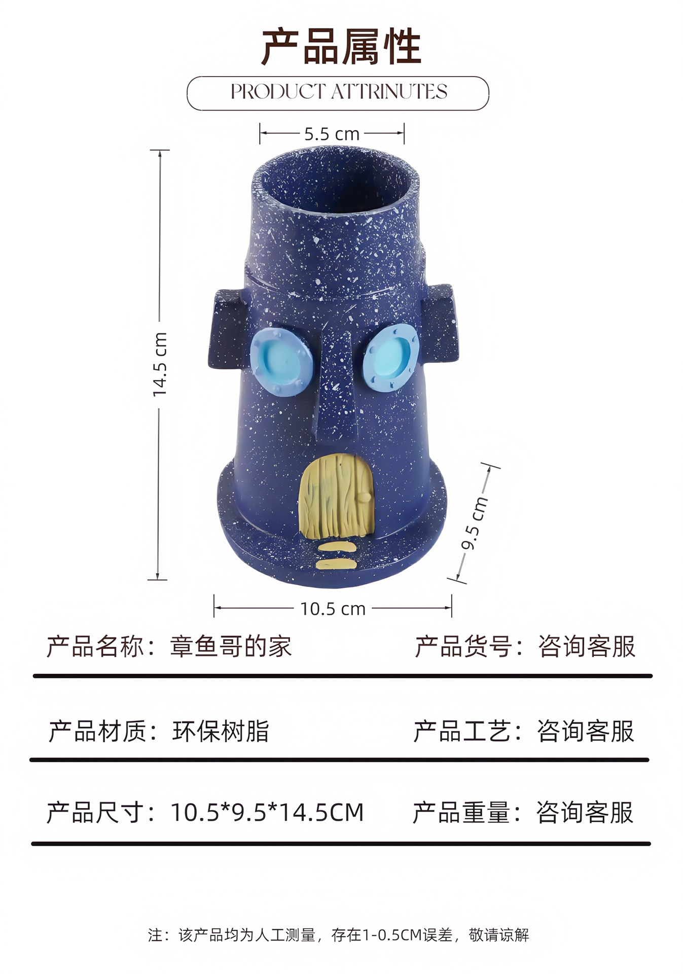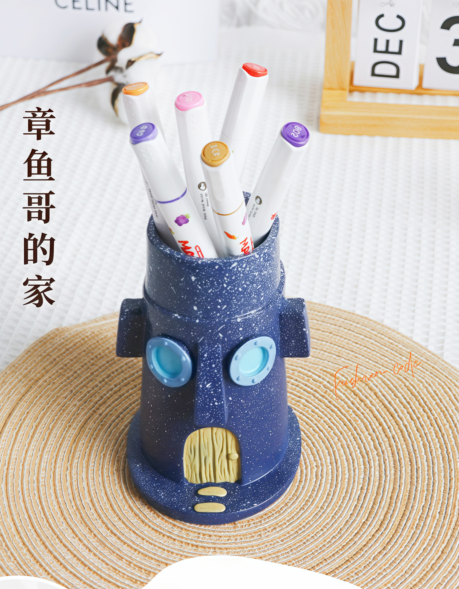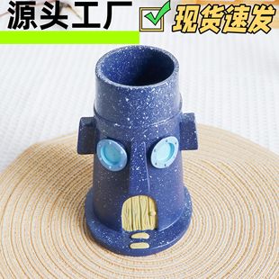 趣味卡通章鱼哥的家笔筒浴室牙膏牙刷收纳装饰礼物桌面树脂笔摆件