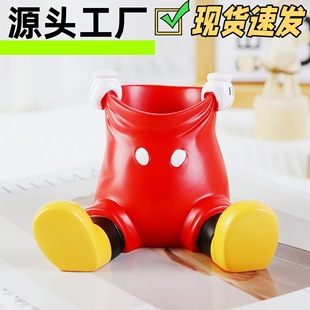 卡通坐姿米奇笔筒学生手机支架办公桌面装饰收纳树脂笔筒米奇摆件