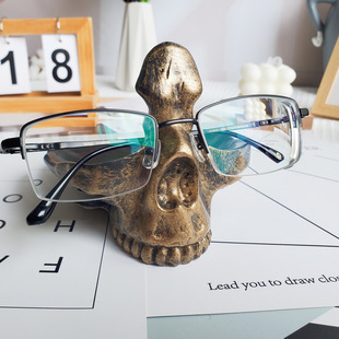 跨境爆款骷髅头眼镜支架树脂家居装饰工艺品摆件床头首饰收纳盘
