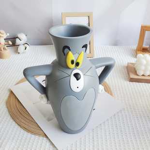卡通变形汤姆猫花瓶插花时尚可爱家居装饰树脂工艺品猫和老鼠摆件