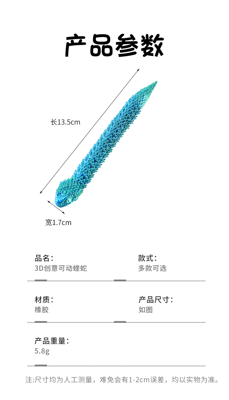 네트워크 폭발 3D 인쇄 장난감 시뮬레이션 바이퍼 홈 장식품 액세서리 재미있는 장난감 전신 이동식 장난감스토어 가기